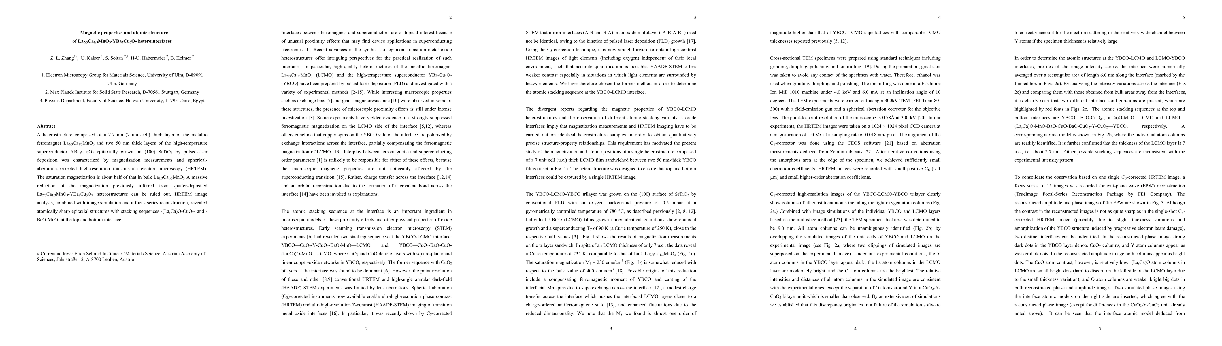 This study investigates the magnetic properties and atomic structure of heterointerfaces formed by epitaxially growing a thin layer of metallic ferromagnet La(2/3)Ca(1/3)MnO(3) on a high-temperature superconductor YBa(2)Cu(3)O(7) using pulsed-laser deposition. Despite reduced saturation magnetization, atomically sharp interfaces were observed via HRTEM, refuting previous claims of significant magnetization reduction in such heterostructures.