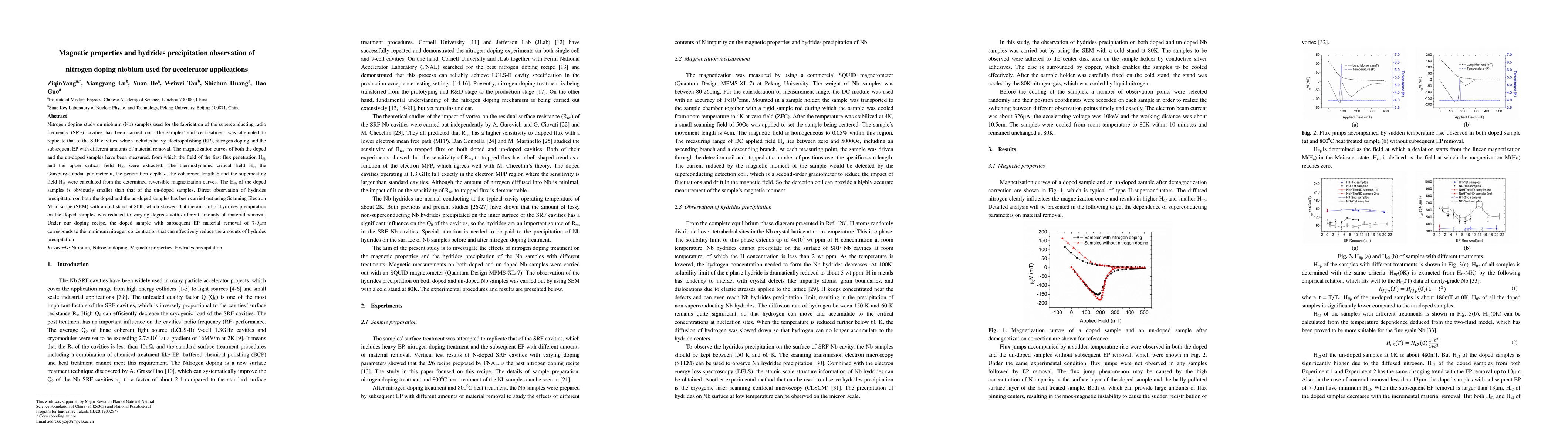 This study investigates nitrogen doping in niobium used for superconducting radio frequency cavities, finding that it reduces hydride precipitation. The superheating field in doped samples is lower, and optimal nitrogen concentration for minimizing hydrides requires 7-9 microns of material removal post-doping.