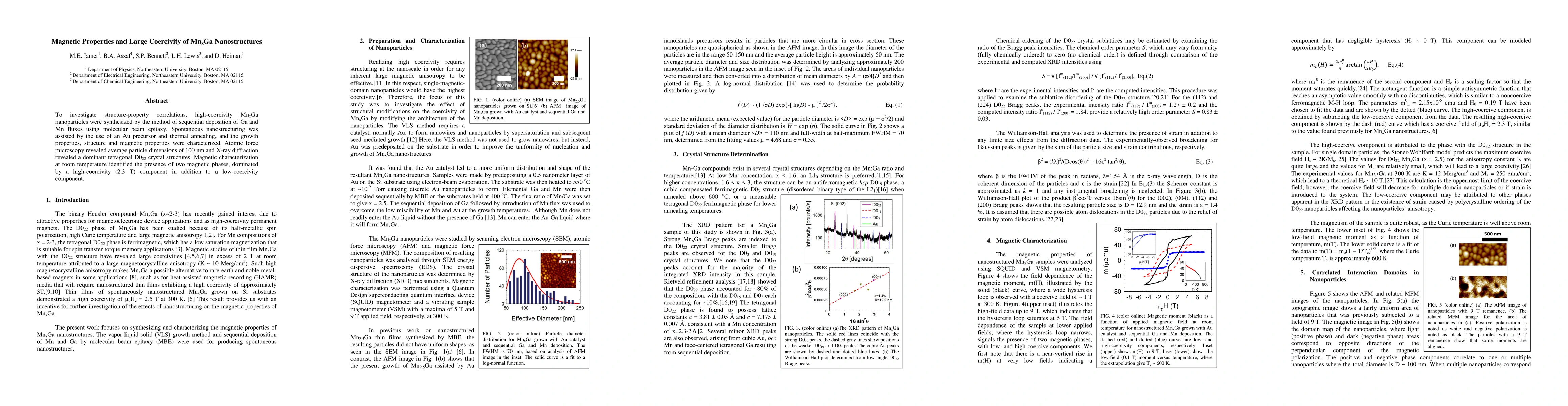 This study synthesizes high-coercivity MnxGa nanoparticles via sequential deposition and thermal annealing, revealing a dominant tetragonal crystal structure and two magnetic phases, with a prominent high-coercivity component of 2.3 T. The research highlights the potential of these nanostructures for advanced magnetic applications.