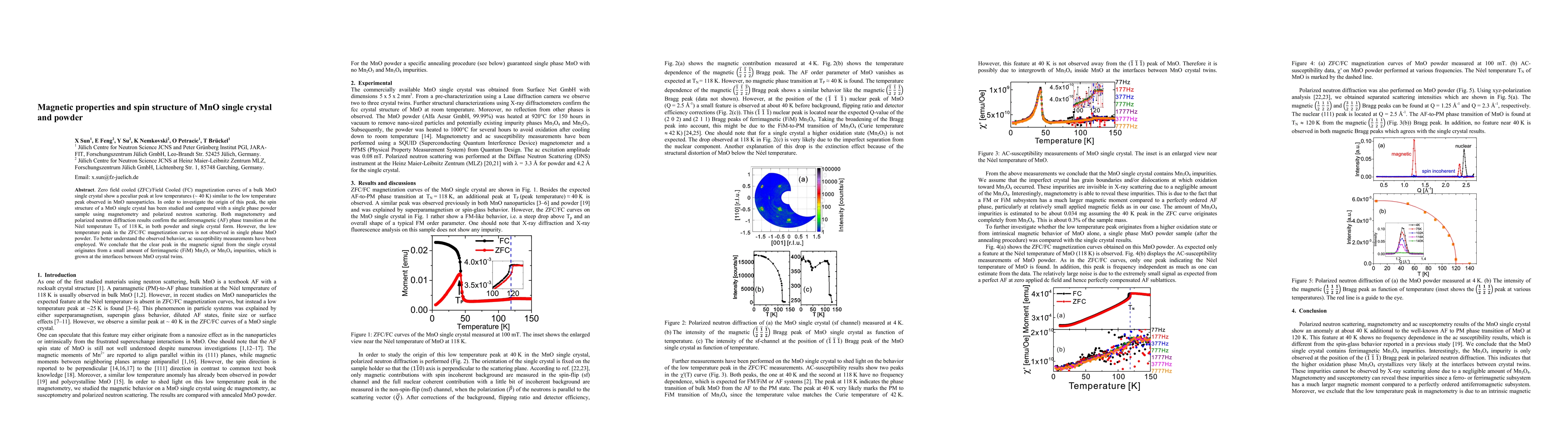 This study investigates the magnetic properties of MnO single crystals and powders, revealing an antiferromagnetic phase transition at 118K. A peculiar peak in the ZFC/FC magnetization curves of MnO crystals, absent in powder, is attributed to ferrimagnetic impurities at crystal interfaces.