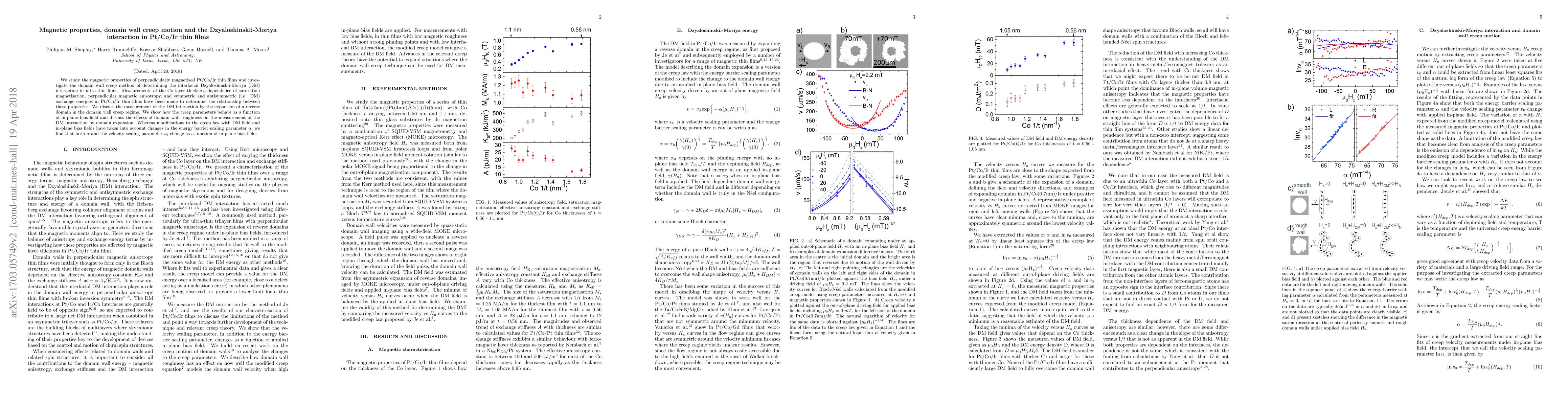 This study investigates the magnetic properties of Pt/Co/Ir thin films, focusing on the Dzyaloshinskii-Moriya interaction (DMI) via domain wall creep motion. The research finds that both the energy barrier scaling parameter and domain wall velocity change with in-plane bias fields, affecting measurements of the DMI.