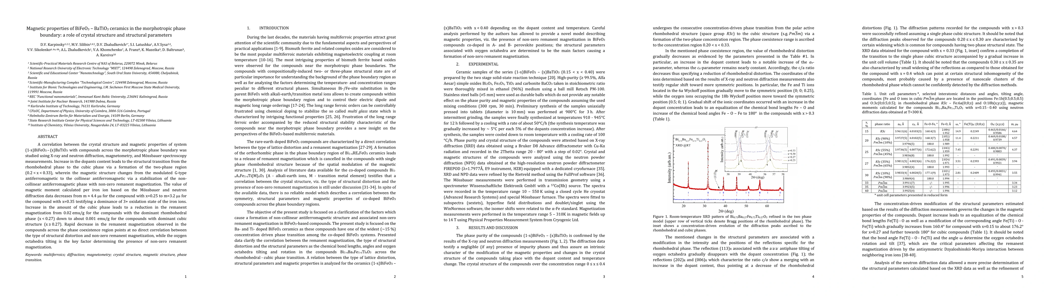 A correlation between the crystal structure and magnetic properties of system (1-x)BiFeO$_3$-(x)BaTiO$_3$ with compounds across the morphotropic phase boundary was studied using X-ray and neutron diffraction, magnetometry, and Mossbauer spectroscopy measurements. Increase in the dopants content leads to the structural transition from the rhombohedral phase to the cubic phase via a formation of the two-phase region (0.2 < x < 0.33), wherein the magnetic structure changes from the modulated G-type antiferromagnetic to the collinear antiferromagnetic via a stabilization of the non-collinear antiferromagnetic phase with non-zero remanent magnetization. The value of magnetic moment calculated per iron ion based on the Mossbauer and neutron diffraction data decreases from m = 4.4 mB for the compound with x=0.25 to m=3.2 mB for the compound with x=0.35 testifying a dominance of 3+ oxidation state of the iron ions. Increase in the amount of the cubic phase leads to a reduction in the remanent magnetization from 0.02 emu.g for the compounds with the dominant rhombohedral phase (x < 0.27) down to about 0.001 emu/g for the compounds with dominant cubic structure (x >= 0.27). Rapid decrease in the remanent magnetization observed in the compounds across the phase coexistence region points at no direct correlation between the type of structural distortion and non-zero remanent magnetization, while the oxygen octahedra tilting is the key factor determining the presence of non-zero remanent magnetization.
