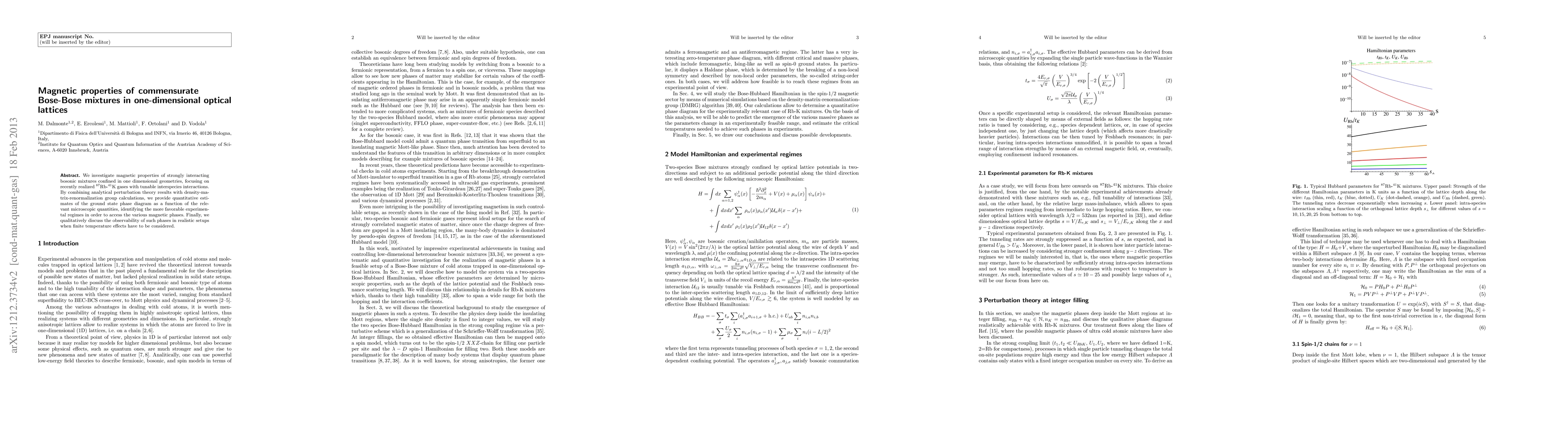 We investigate magnetic properties of strongly interacting bosonic mixtures confined in one dimensional geometries, focusing on recently realized Rb-K gases with tunable interspecies interactions. By combining analytical perturbation theory results with density-matrix-renormalization group calculations, we provide quantitative estimates of the ground state phase diagram as a function of the relevant microscopic quantities, identifying the more favorable experimental regimes in order to access the various magnetic phases. Finally, we qualitatively discuss the observability of such phases in realistic setups when finite temperature effects have to be considered.