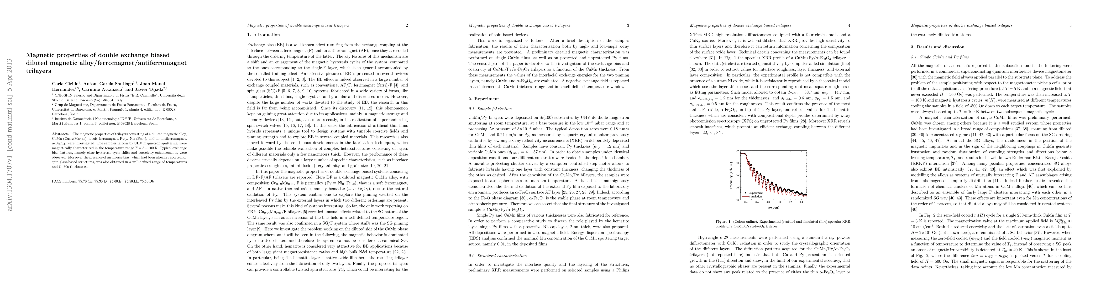 Researchers studied trilayers of a diluted magnetic alloy, ferromagnet, and antiferromagnet to investigate exchange bias features, finding clear hysteresis cycle shifts and coercivity enhancements, as well as an inverse bias in a defined temperature range.