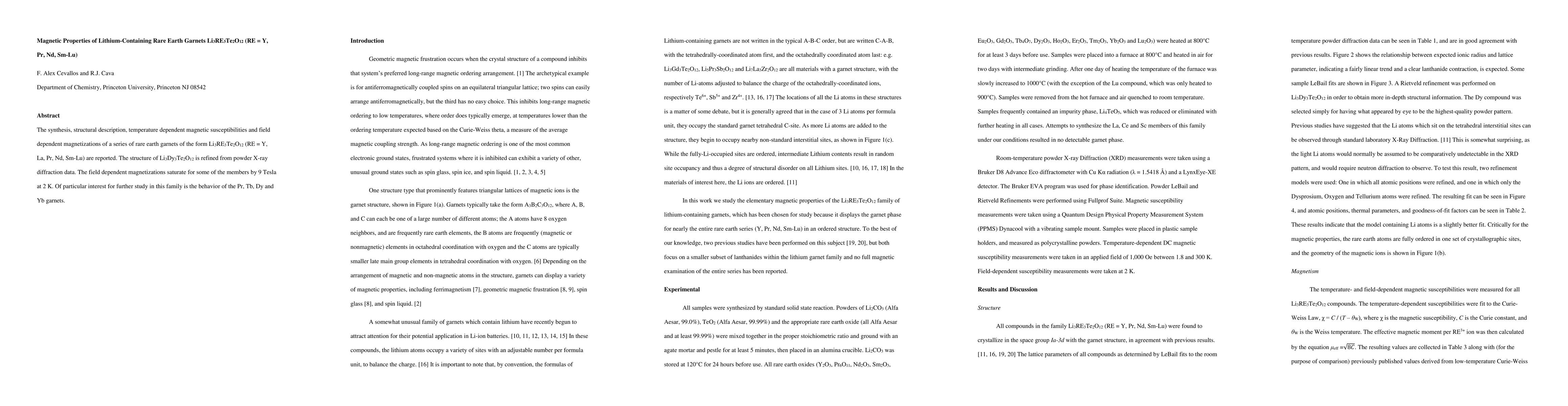This paper reports on the synthesis and magnetic properties of lithium-containing rare earth garnets Li3RE3Te2O12 (RE = Y, Pr, Nd, Sm-Lu). The study reveals that Dy and Yb garnets exhibit saturation magnetization under 9 Tesla at 2 K, with Pr, Tb, Dy, and Yb garnets showing particularly noteworthy magnetic behaviors.
