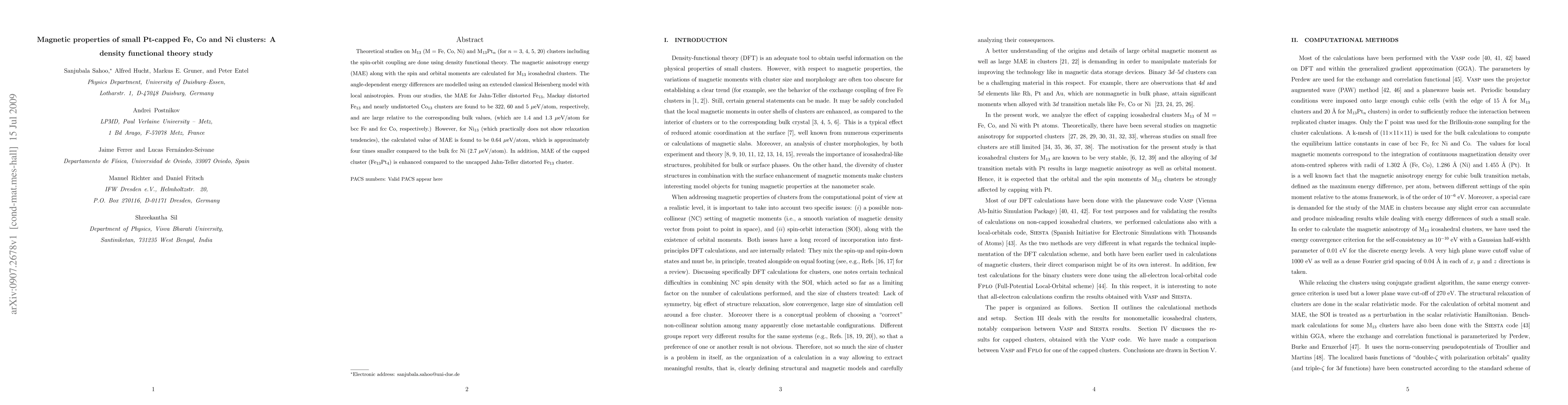 This study uses density functional theory to investigate the magnetic properties of small Pt-capped Fe, Co, and Ni clusters, finding significant magnetic anisotropy energy (MAE) in M$_{13}$ clusters, especially in Pt-capped Fe$_{13}$Pt$_4$, compared to bulk values. The MAE for Fe$_{13}$ is notably higher, while Ni$_{13}$ shows a much lower MAE.