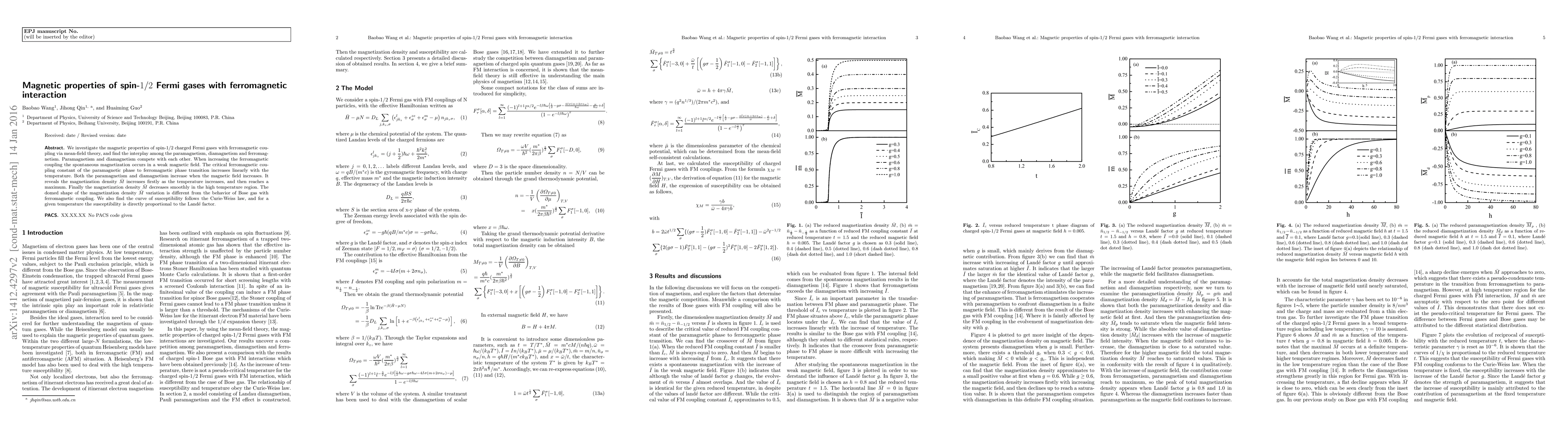 We investigate the magnetic properties of spin-$1/2$ charged Fermi gases with ferromagnetic coupling via mean-field theory, and find the interplay among the paramagnetism, diamagnetism and ferromagnetism. Paramagnetism and diamagnetism compete with each other. When increasing the ferromagnetic coupling the spontaneous magnetization occurs in a weak magnetic field. The critical ferromagnetic coupling constant of the paramagnetic phase to ferromagnetic phase transition increases linearly with the temperature. Both the paramagnetism and diamagnetism increase when the magnetic field increases. It reveals the magnetization density $\bar M$ increases firstly as the temperature increases, and then reaches a maximum. Finally the magnetization density $\bar M$ decreases smoothly in the high temperature region. The domed shape of the magnetization density $\bar M$ variation is different from the behavior of Bose gas with ferromagnetic coupling. We also find the curve of susceptibility follows the Curie-Weiss law, and for a given temperature the susceptibility is directly proportional to the Land\'{e} factor.