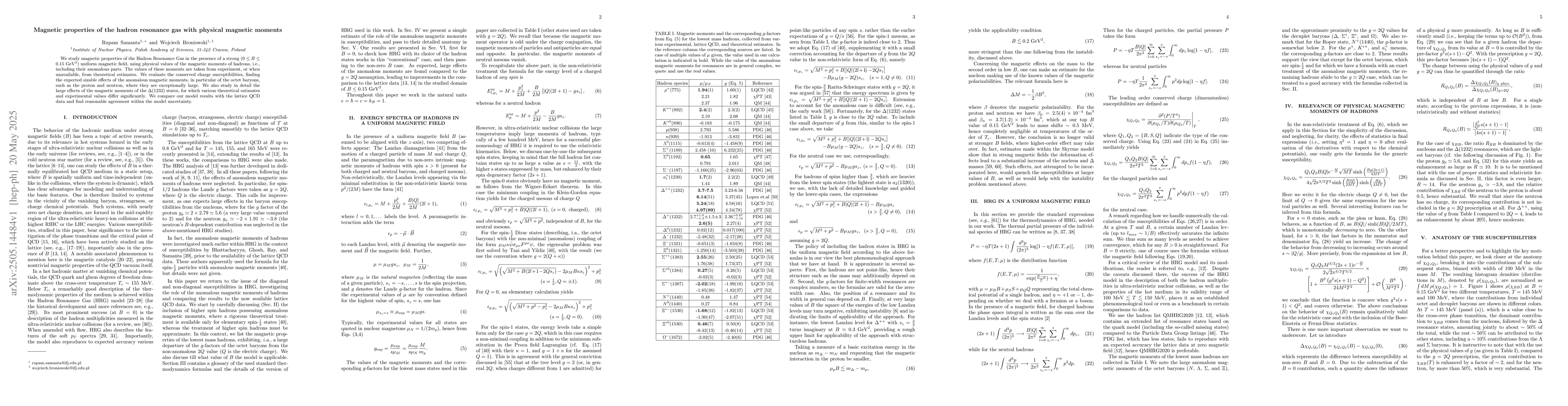 This work stands out by using actual physical magnetic moments of hadrons, including anomalous contributions, in the Hadron Resonance Gas model, offering a more realistic description of magnetic properties in extreme conditions compared to previous studies.