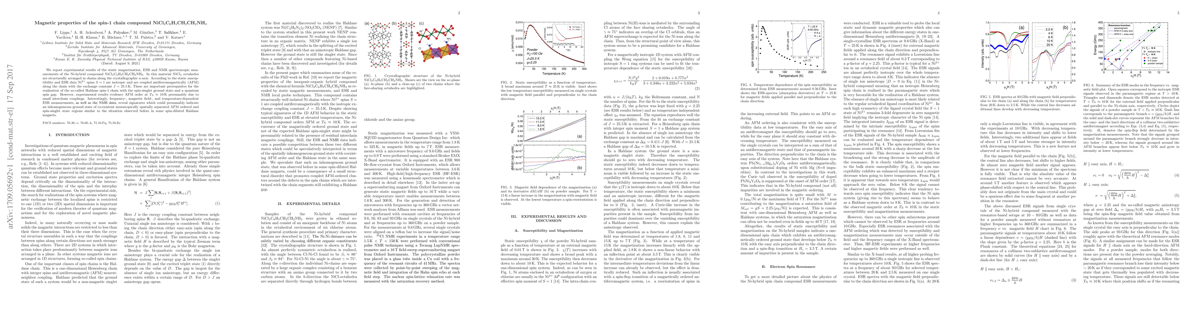 We report experimental results of the static magnetization, ESR and NMR spectroscopic measurements of the Ni-hybrid compound NiCl$_3$C$_6$H$_5$CH$_2$CH$_2$NH$_3$. In this material NiCl$_3$ octahedra are structurally arranged in chains along the crystallographic $a$-axis. According to the static susceptibility and ESR data Ni$^{2+}$ spins $S = 1$ are isotropic and are coupled antiferromagnetically (AFM) along the chain with the exchange constant $J = 25.5$ K. These are important prerequisites for the realization of the so-called Haldane spin-1 chain with the spin-singlet ground state and a quantum spin gap. However, experimental results evidence AFM order at $T_{\rm N} \approx 10$ K presumably due to small interchain couplings. Interestingly, frequency-, magnetic field-, and temperature-dependent ESR measurements, as well as the NMR data, reveal signatures which could presumably indicate an inhomogeneous ground state of co-existent mesoscopically spatially separated AFM ordered and spin-singlet state regions similar to the situation observed before in some spin-diluted Haldane magnets.