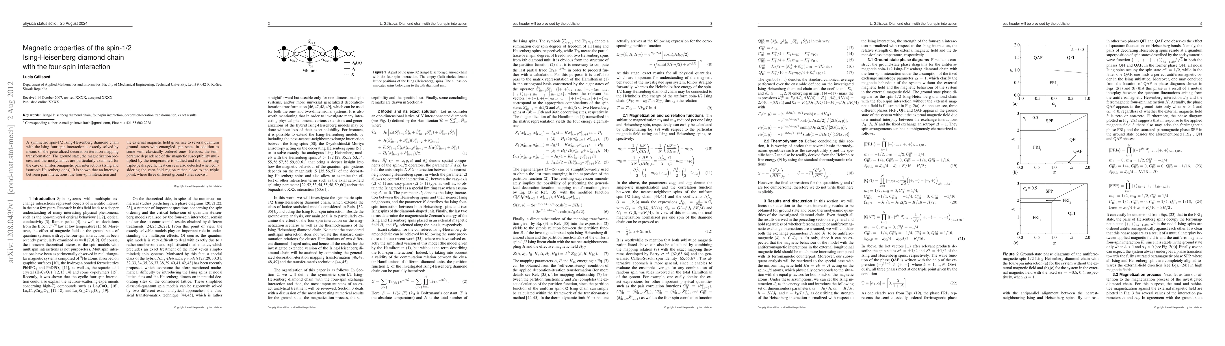 This study exactly solves a spin-1/2 Ising-Heisenberg diamond chain with four-spin interactions using a generalized transformation. It reveals multiple quantum ground states and a triple-peak specific heat curve near the triple point, emphasizing the complex interplay between pair interactions, four-spin effects, and external magnetic fields.