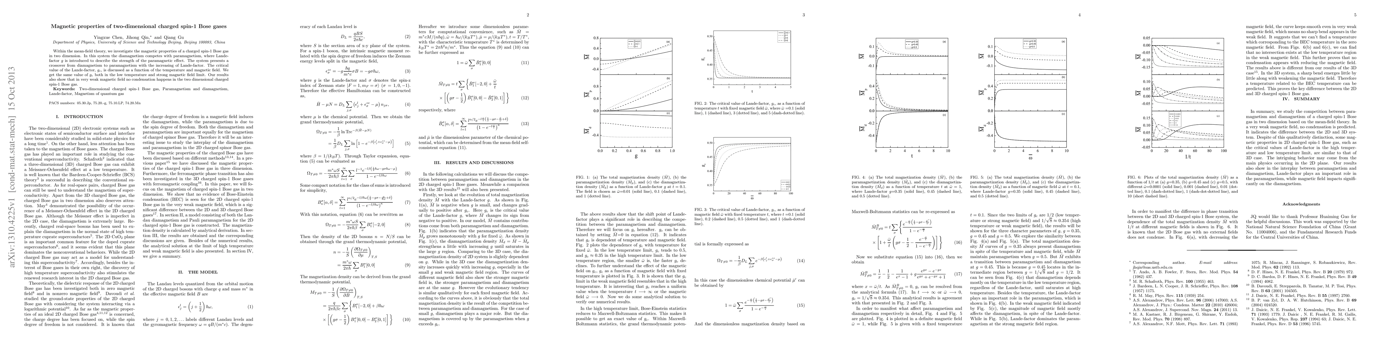 Within the mean-field theory, we investigate the magnetic properties of a charged spin-1 Bose gas in two dimension. In this system the diamagnetism competes with paramagnetism, where Lande-factor $g$ is introduced to describe the strength of the paramagnetic effect. The system presents a crossover from diamagnetism to paramagnetism with the increasing of Lande-factor. The critical value of the Lande-factor, $g_{c}$, is discussed as a function of the temperature and magnetic field. We get the same value of $g_{c}$ both in the low temperature and strong magnetic field limit. Our results also show that in very weak magnetic field no condensation happens in the two dimensional charged spin-1 Bose gas.