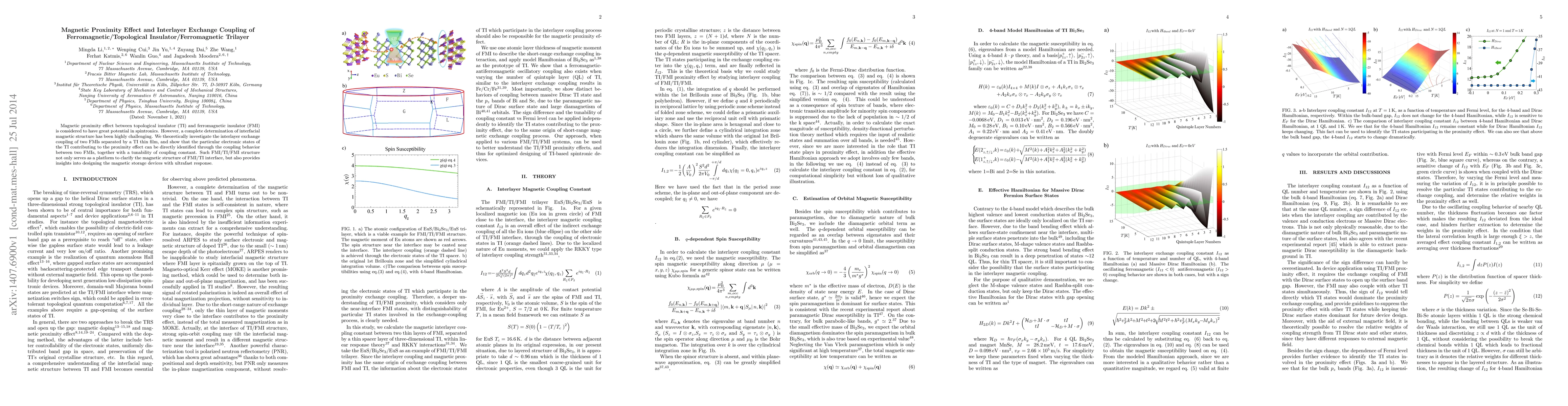 This paper investigates the magnetic proximity effect and interlayer exchange coupling in a ferromagnetic/topological insulator/ferromagnetic trilayer, demonstrating that the electronic states of the TI can be identified through the coupling behavior between the FM layers, offering insights for designing ultrafast magnetic storage devices.