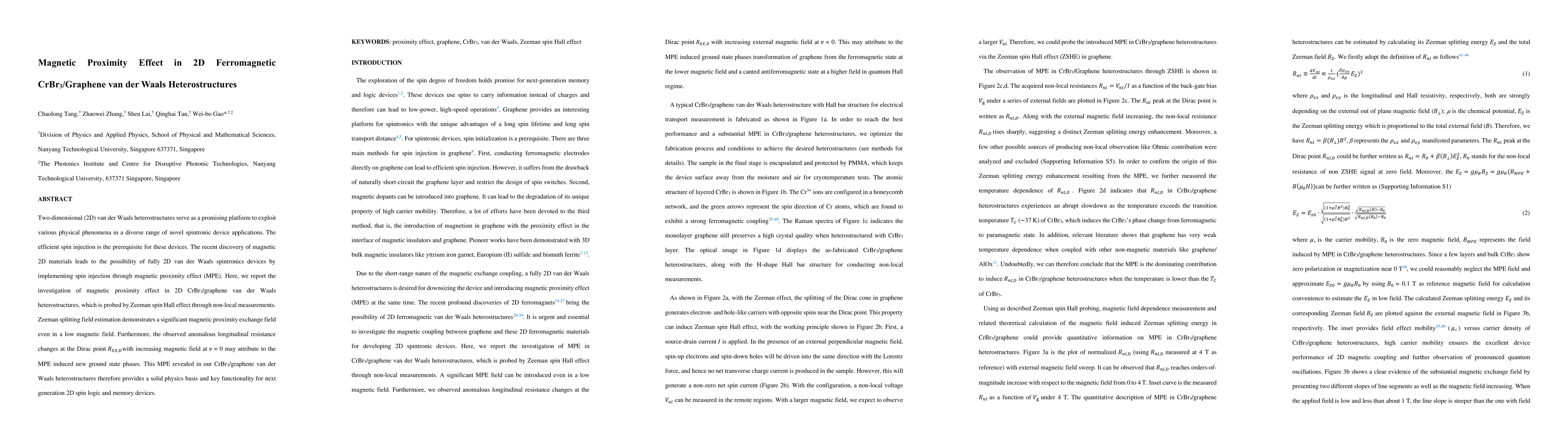 This paper investigates the magnetic proximity effect in 2D CrBr3/graphene van der Waals heterostructures, demonstrating significant magnetic exchange fields through the Zeeman spin Hall effect. The study reveals new ground state phases and foundational physics for next-generation 2D spintronic devices.