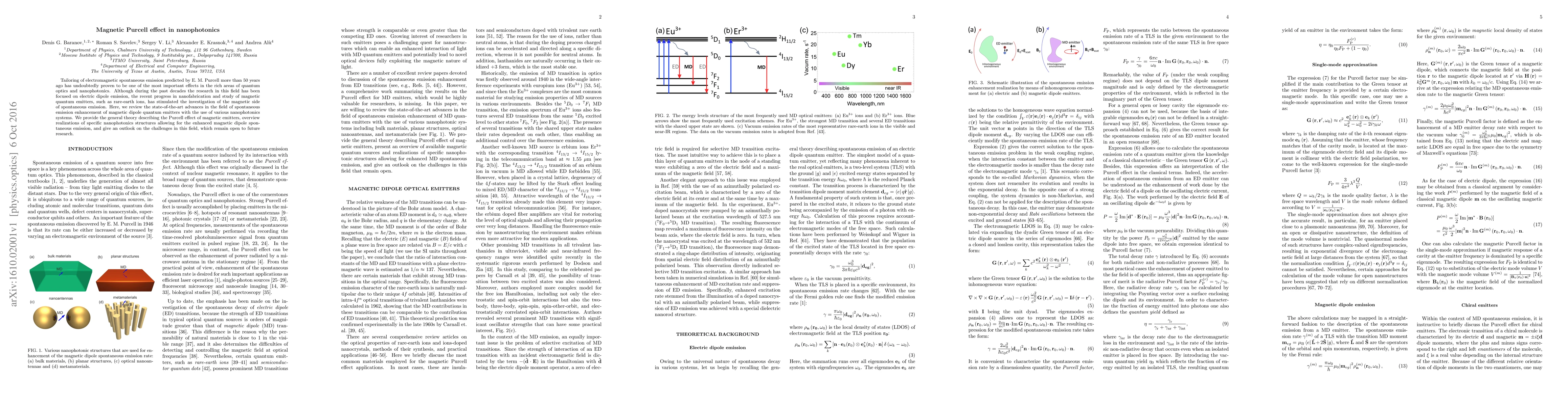 Tailoring of electromagnetic spontaneous emission predicted by E. M. Purcell more than 50 years ago has undoubtedly proven to be one of the most important effects in the rich areas of quantum optics and nanophotonics. Although during the past decades the research in this field has been focused on electric dipole emission, the recent progress in nanofabrication and study of magnetic quantum emitters, such as rare-earth ions, has stimulated the investigation of the magnetic side of spontaneous emission. Here, we review the state-of-the-art advances in the field of spontaneous emission enhancement of magnetic dipole quantum emitters with the use of various nanophotonics systems. We provide the general theory describing the Purcell effect of magnetic emitters, overview realizations of specific nanophotonics structures allowing for the enhanced magnetic dipole spontaneous emission, and give an outlook on the challenges in this field, which remain open to future research.