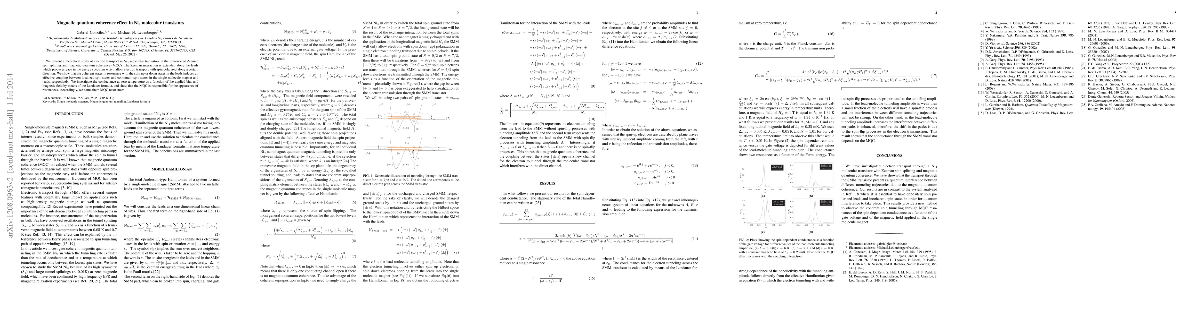 This study investigates electron transport in single molecule magnet transistors, showing that magnetic quantum coherence (MQC) induces effective coupling between localized and continuum spin states, leading to MQC resonances in conductance as a function of bias and magnetic field.