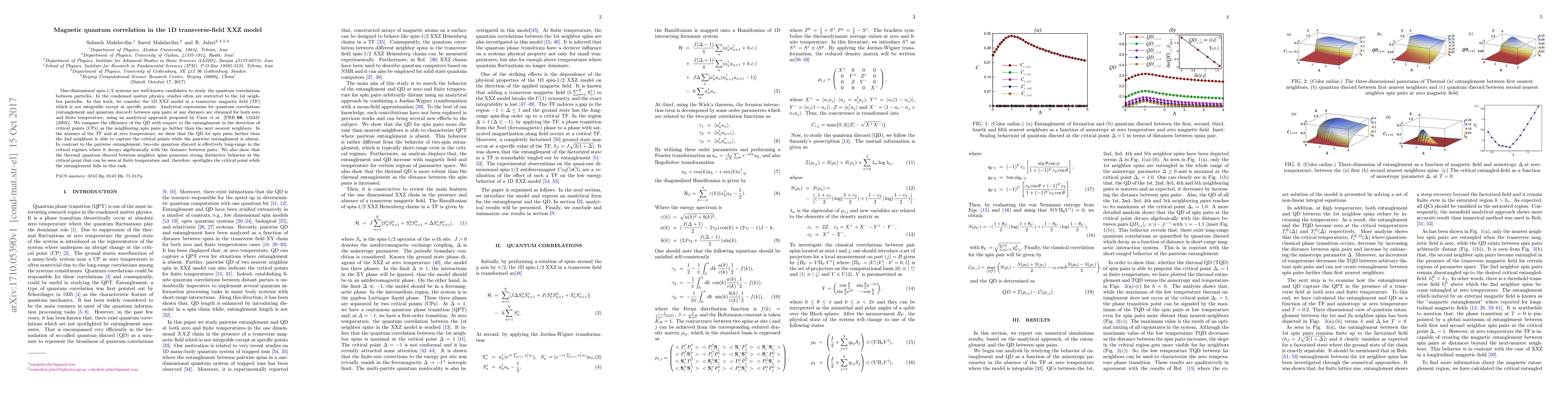 One-dimensional spin-1/2 systems are well-known candidates to study the quantum correlations between particles. In the condensed matter physics, studies often are restricted to the 1st neighbor particles. In this work, we consider the 1D XXZ model in a transverse magnetic field (TF) which is not integrable except at specific points. Analytical expressions for quantum correlations (entanglement and quantum discord) between spin pairs at any distance are obtained for both zero and finite temperature, using an analytical approach proposed by Caux et al. [PRB 68, 134431 (2003)]. We compare the efficiency of the QD with respect to the entanglement in the detection of critical points (CPs) as the neighboring spin pairs go farther than the next nearest neighbors. In the absence of the TF and at zero temperature, we show that the QD for spin pairs farther than the 2nd neighbors is able to capture the critical points while the pairwise entanglement is absent. In contrast to the pairwise entanglement, two-site quantum discord is effectively long-range in the critical regimes where it decays algebraically with the distance between pairs. We also show that the thermal quantum discord between neighbor spins possesses strong distinctive behavior at the critical point that can be seen at finite temperature and, therefore, spotlights the critical point while the entanglement fails in this task.