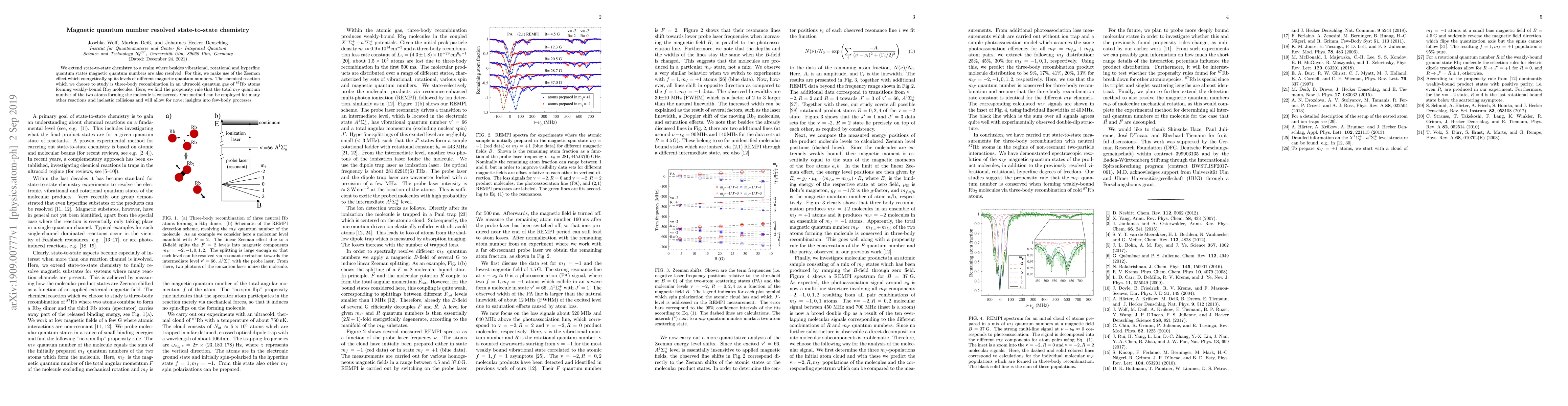 We extend state-to-state chemistry to a realm where besides vibrational, rotational and hyperfine quantum states magnetic quantum numbers are also resolved. For this, we make use of the Zeeman effect which energetically splits levels of different magnetic quantum numbers. The chemical reaction which we choose to study is three-body recombination in an ultracold quantum gas of $^{87}$Rb atoms forming weakly-bound Rb$_2$ molecules. Here, we find the propensity rule that the total $m_F$ quantum number of the two atoms forming the molecule is conserved. Our method can be employed for many other reactions and inelastic collisions and will allow for novel insights into few-body processes.