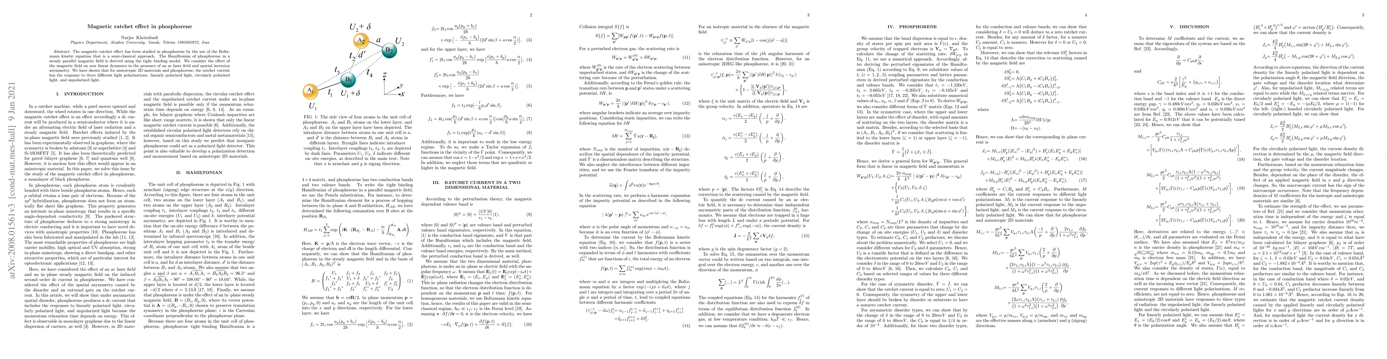 This study investigates the magnetic ratchet effect in phosphorene using the Boltzmann kinetic equation, revealing how a steady magnetic field influences non-linear dynamics under an ac laser field and spatial inversion asymmetry. The research demonstrates that phosphorene's ratchet current responds differently to various light polarizations: linearly, circularly, and unpolarized.