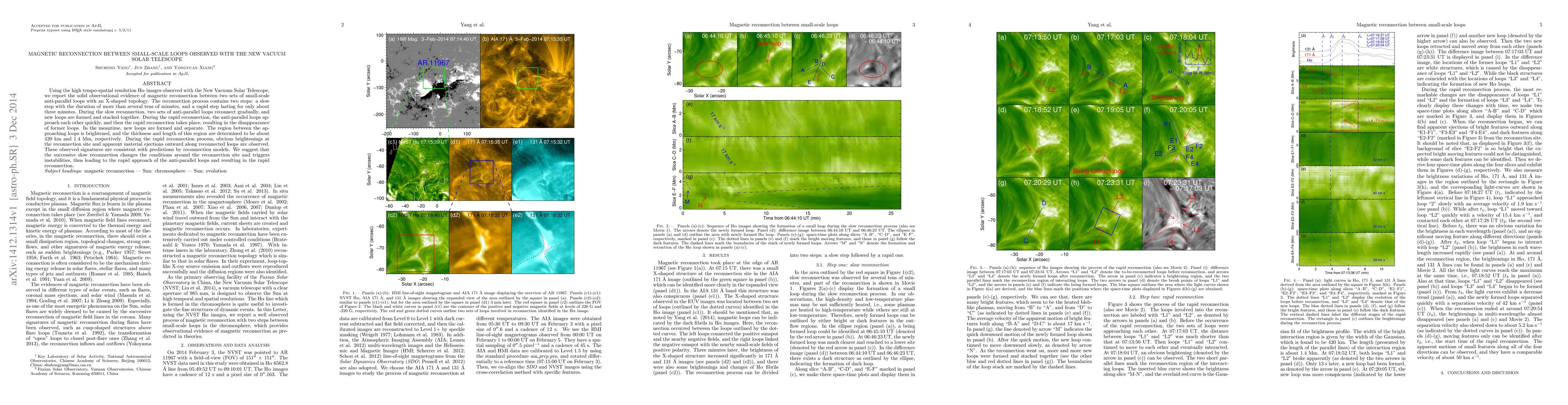 This study observed magnetic reconnection between small-scale anti-parallel loops using high-resolution H$\alpha$ images, identifying a two-step process: a gradual slow reconnection followed by a rapid reconnection, with the latter resulting in new loop formation and material ejections. The findings support reconnection model predictions.
