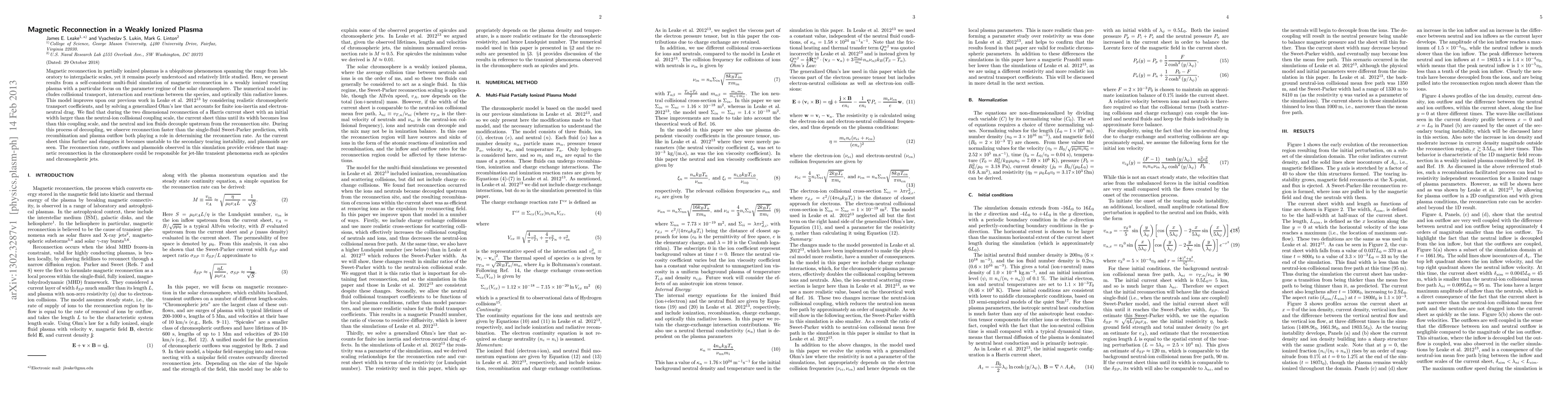 This paper investigates magnetic reconnection in weakly ionized plasmas, specifically focusing on the solar chromosphere. The study employs a self-consistent multi-fluid simulation that includes collisional transport, species interactions, and radiative losses, revealing faster reconnection rates than predicted by single-fluid models due to recombination and plasma outflows. The findings suggest that magnetic reconnection in the chromosphere may drive jet-like transient phenomena such as spicules and chromospheric jets.