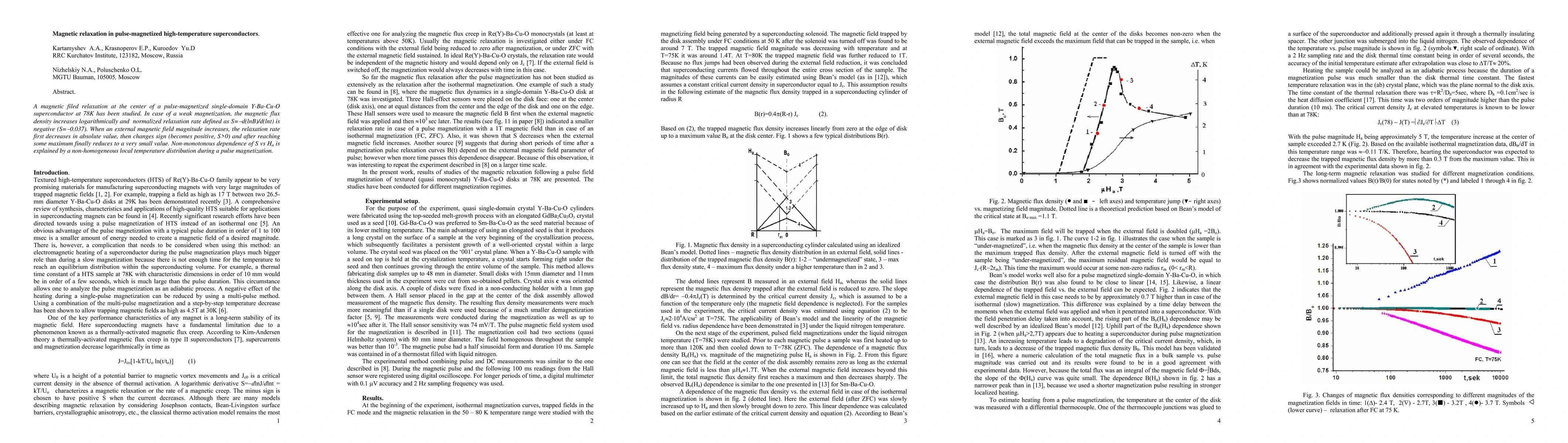 Researchers studied magnetic relaxation in pulse-magnetized high-temperature superconductors at 78K, finding that the relaxation rate changes sign as the external magnetic field magnitude increases, and is influenced by local temperature distributions.