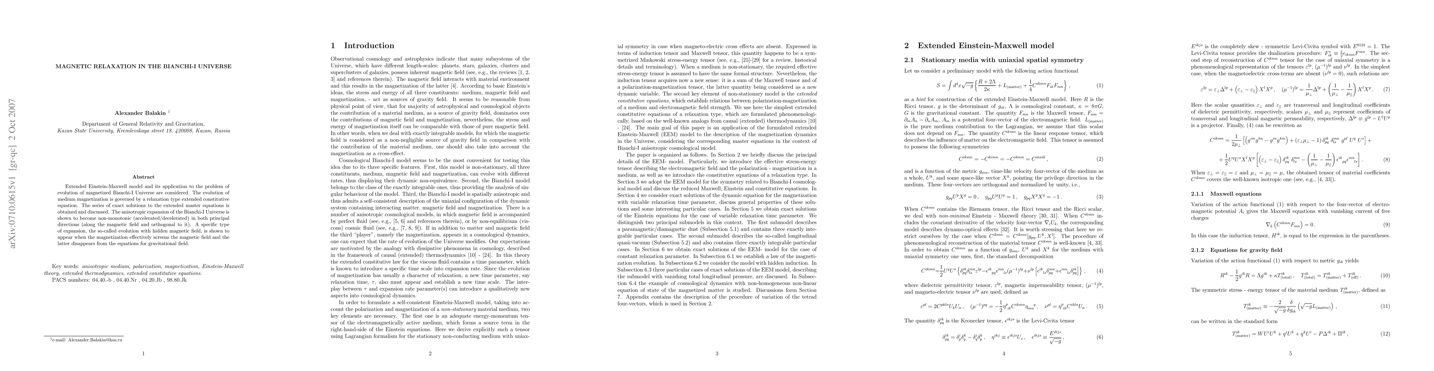 Extended Einstein-Maxwell model and its application to the problem of evolution of magnetized Bianchi-I Universe are considered. The evolution of medium magnetization is governed by a relaxation type extended constitutive equation. The series of exact solutions to the extended master equations is obtained and discussed. The anisotropic expansion of the Bianchi-I Universe is shown to become non-monotonic (accelerated/decelerated) in both principal directions (along the magnetic field and orthogonal to it). A specific type of expansion, the so-called evolution with hidden magnetic field, is shown to appear when the magnetization effectively screens the magnetic field and the latter disappears from the equations for gravitational field.
