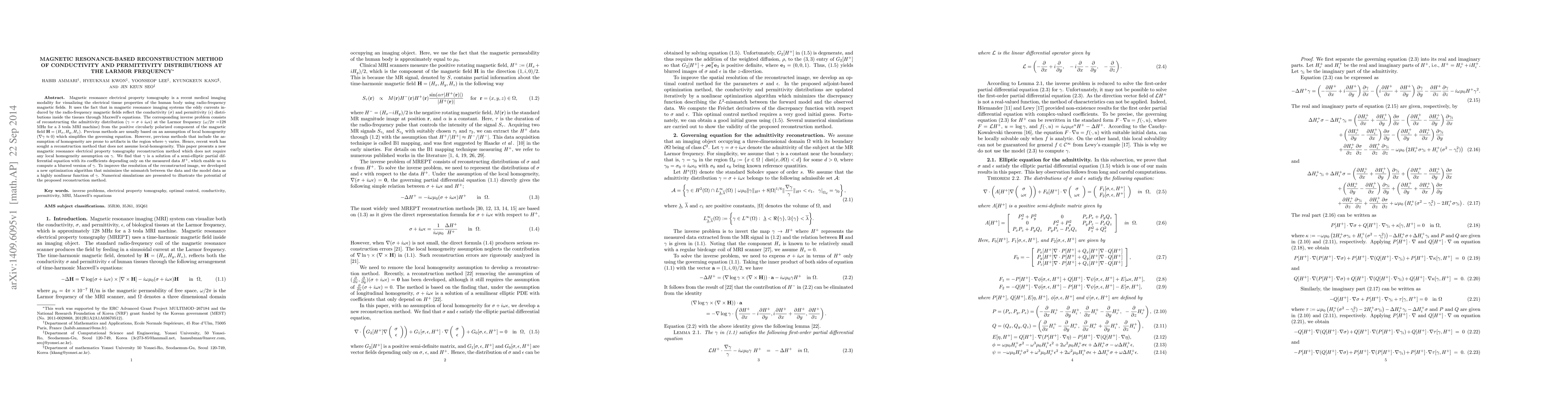 This paper introduces a novel magnetic resonance-based reconstruction method for visualizing conductivity and permittivity distributions in tissues without assuming local homogeneity. The method solves a semi-elliptic partial differential equation to compute a blurred version of the admittivity distribution and employs an optimization algorithm to enhance image resolution, demonstrated through numerical simulations.