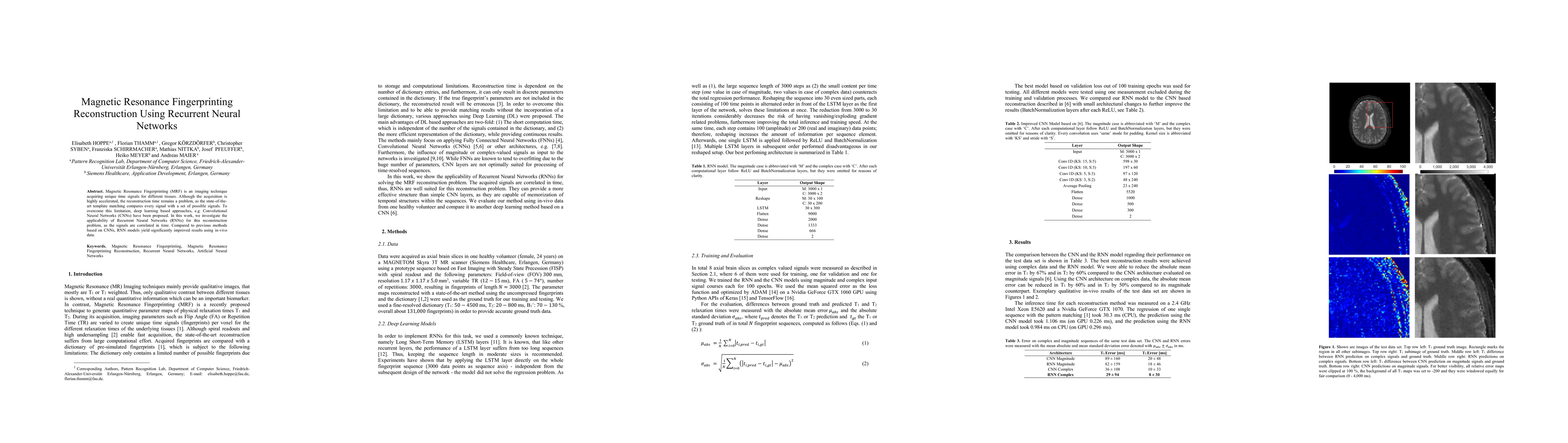 This paper explores the use of Recurrent Neural Networks (RNNs) for Magnetic Resonance Fingerprinting (MRF) reconstruction, demonstrating improved results over Convolutional Neural Networks (CNNs) due to the temporal correlation in MRF signals. The study shows that RNNs significantly reduce reconstruction time using in-vivo data.