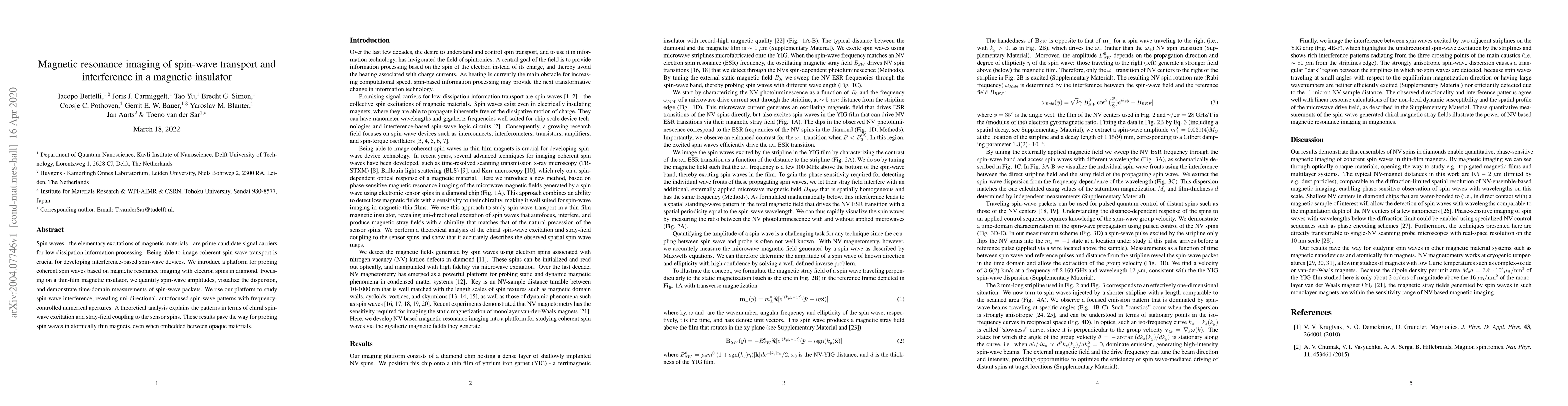 This paper presents a magnetic resonance imaging technique to visualize coherent spin-wave transport and interference in thin-film magnetic insulators using electron spins in diamond. The study reveals uni-directional, autofocused spin-wave patterns, providing a pathway for developing low-dissipation spin-wave devices.