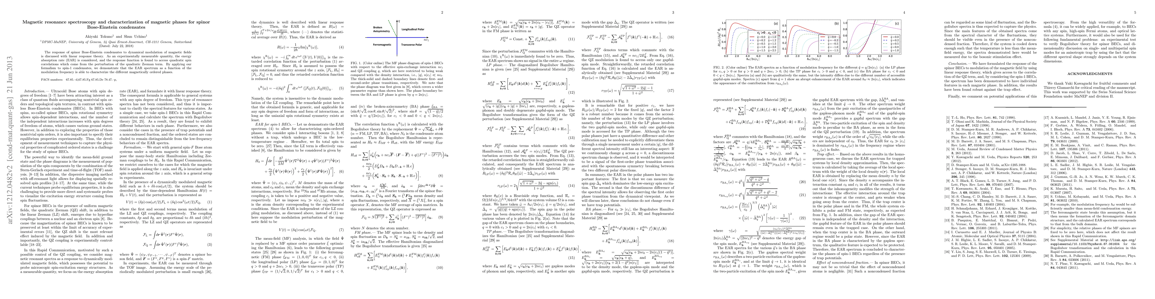 This paper uses magnetic resonance spectroscopy to study the response of spinor Bose-Einstein condensates to magnetic field modulation, focusing on the energy absorption rate (EAR) to characterize different magnetic phases. The EAR spectrum reveals quadratic spin correlations, enabling the identification of various magnetically ordered phases in spin-1 condensates.