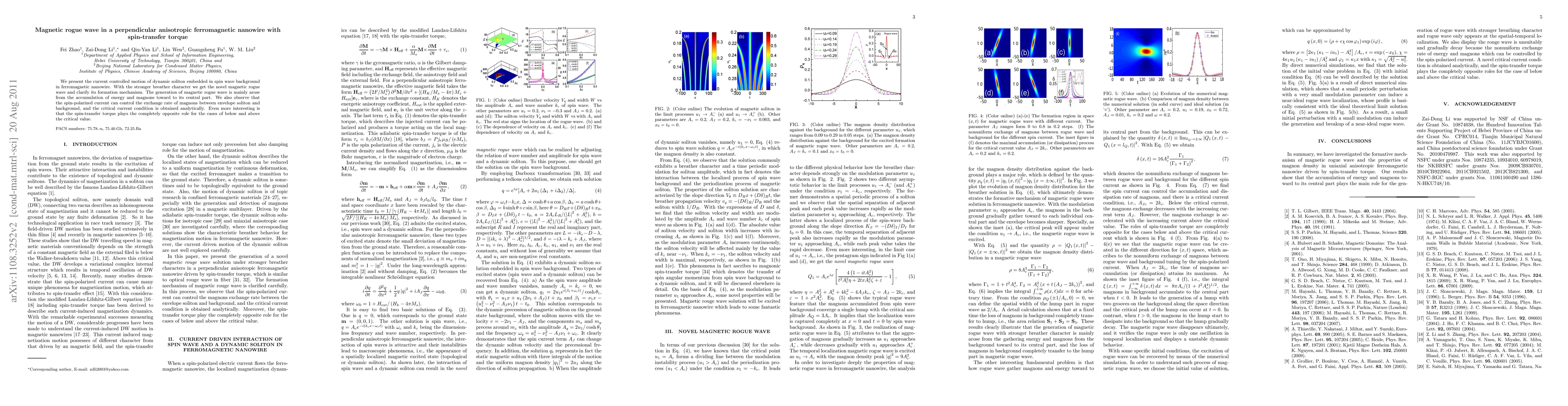 This paper investigates the formation and control of magnetic rogue waves in anisotropic ferromagnetic nanowires under spin-transfer torque, revealing that energy accumulation and magnons drive their generation. The study analytically determines the critical current condition, showing that spin-polarized current can modulate the exchange rate of magnons, with spin-transfer torque acting oppositely below and above this critical value.