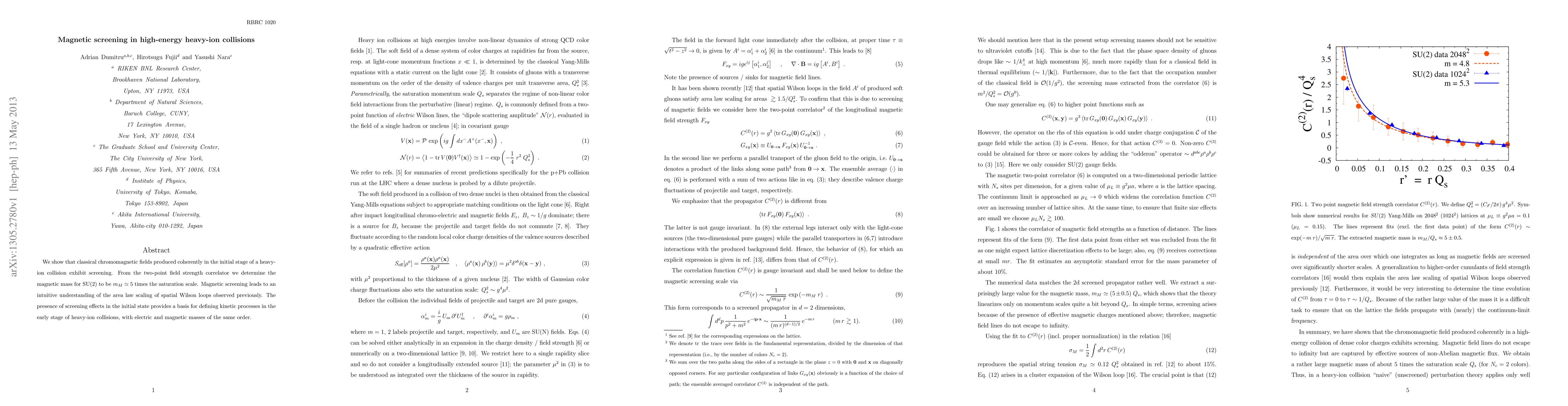 This paper demonstrates that classical chromomagnetic fields in high-energy heavy-ion collisions exhibit screening, determining a magnetic mass for SU(2) around five times the saturation scale. This screening explains the observed area law scaling of spatial Wilson loops and supports defining kinetic processes in the early stages of heavy-ion collisions.