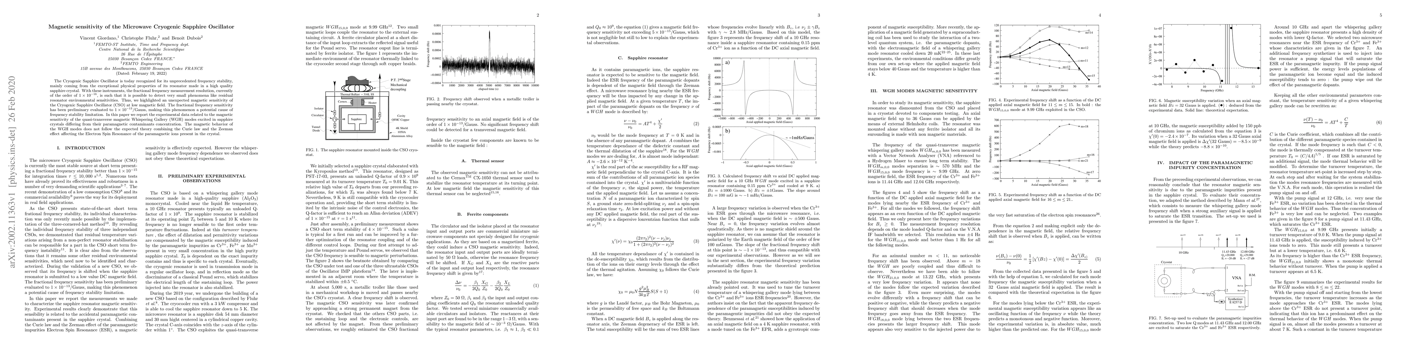 The paper presents an experimental investigation into the magnetic sensitivity of WGH modes in a CSO, identifying a new source of frequency instability related to paramagnetic impurities in sapphire crystals.