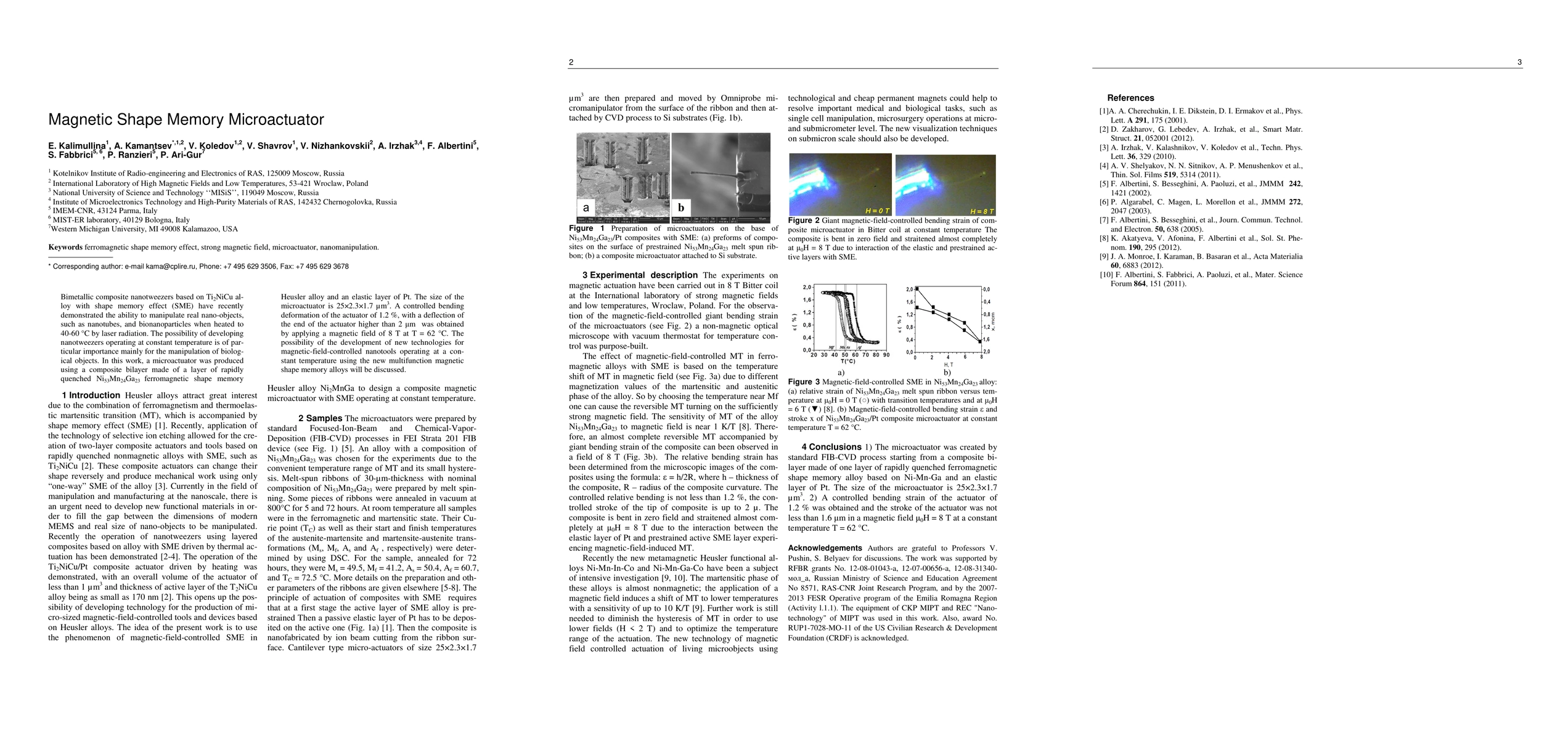 The paper presents a novel magnetic shape memory microactuator using a composite bilayer of Ni53Mn24Ga23 and Pt, demonstrating controlled bending deformation via magnetic fields at constant temperature.