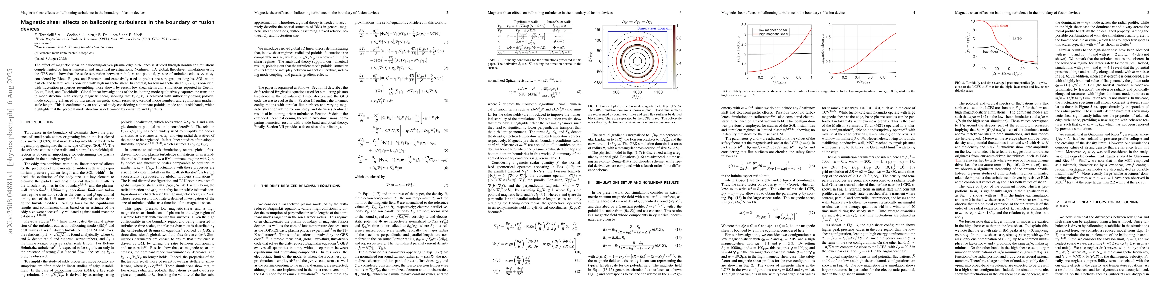 The effect of magnetic shear on ballooning-driven plasma edge turbulence is studied through nonlinear simulations complemented by linear numerical and analytical investigations. Nonlinear, 3D, global, flux-driven simulations using the GBS code show that the scale separation between radial, x, and poloidal, y, size of turbulent eddies, kx << ky , considered by Ricci et al. (2008) and extensively used to predict pressure gradient lengths, SOL width, particle and heat fluxes, is observed with high magnetic shear. In contrast, for low magnetic shear, kx ~ ky is observed, with fluctuation properties resembling those shown by recent low-shear stellarator simulations reported in Coelho et al. (2024a). Global linear investigations of the ballooning mode qualitatively captures the transition in mode structure with varying magnetic shear, showing that kx << ky is achieved with sufficiently strong poloidal mode coupling enhanced by increasing magnetic shear, resistivity, toroidal mode number, and equilibrium gradient scale length. This is confirmed by an analytical study considering a dominant poloidal mode and its sidebands, which highlights that the poloidal mode structure is determined by curvature and k parallel effects