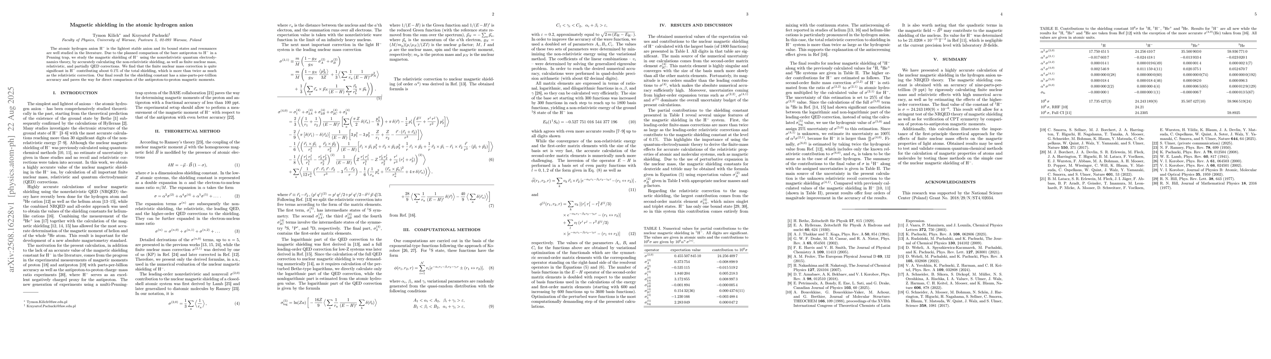 The atomic hydrogen anion H$^-$ is the lightest stable anion and its bound states and resonances are well studied in the literature. Due to the planned comparison of the bare antiproton to H$^-$ in a Penning trap, we study the magnetic shielding of H$^-$ using the nonrelativistic quantum electrodynamics theory, by accurately calculating the non-relativistic shielding, as well as finite nuclear mass, relativistic, and partially QED corrections. We find that the finite nuclear mass correction is quite significant in H$^-$ contributing about $0.1\%$ of the total shielding, which is more than twice as much as the relativistic correction. Our final result for the shielding constant has a nine-parts-per-trillion accuracy and paves the way for direct comparison of the antiproton-to-proton magnetic moments.