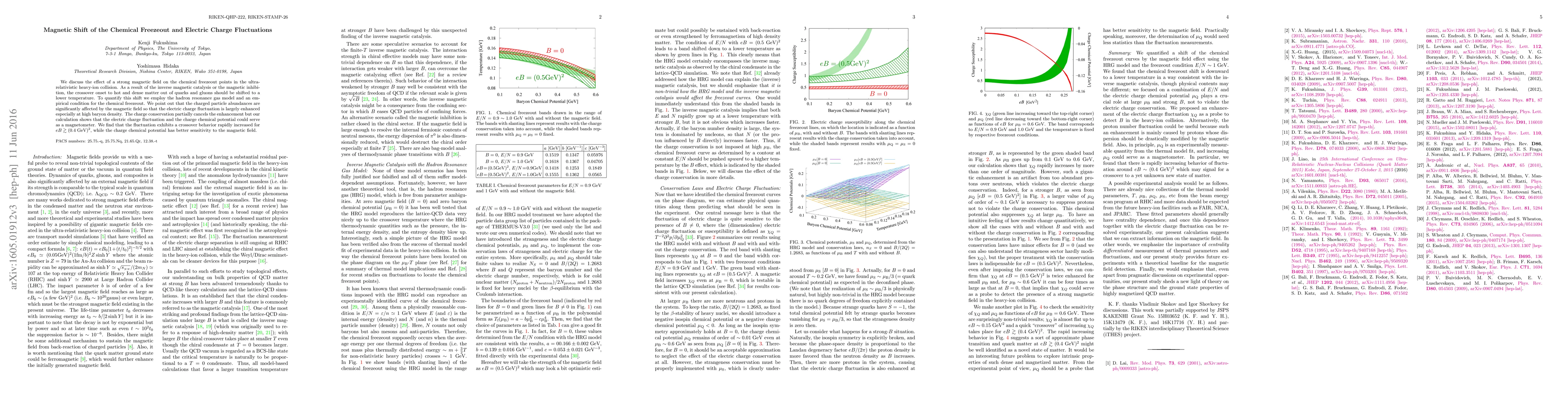 This research explores the impact of strong magnetic fields on chemical freezeout in ultrarelativistic heavy-ion collisions, suggesting a temperature shift due to inverse magnetic catalysis. It predicts significant enhancements in electric charge fluctuations, particularly at high baryon density, which could potentially act as a magnetometer. The study utilizes the hadron resonance gas model and an empirical chemical freezeout condition for quantification.