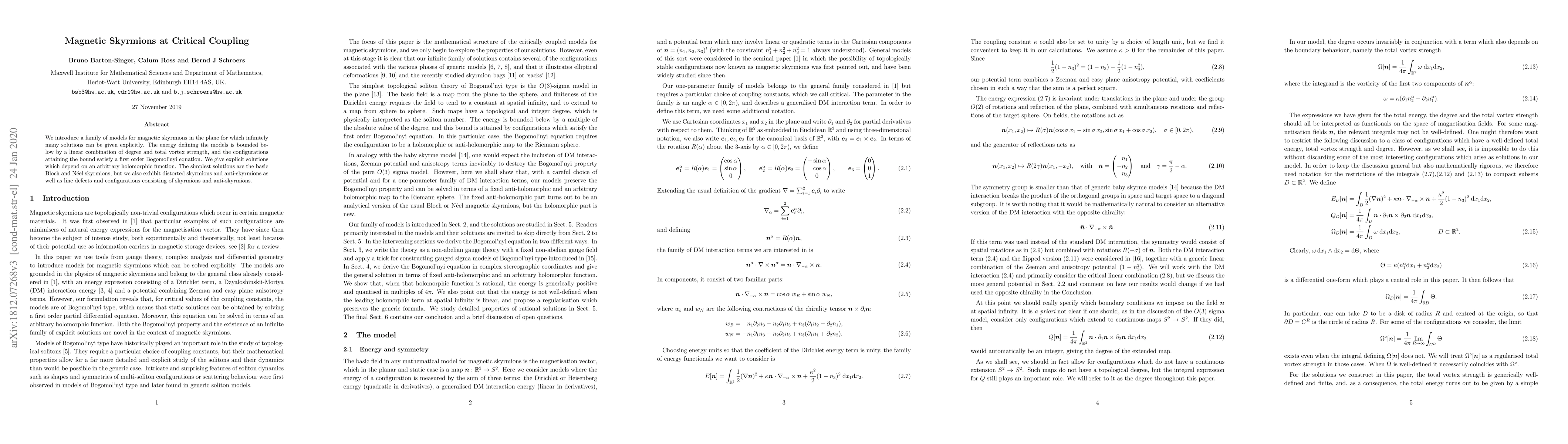 Researchers have discovered a family of models for magnetic skyrmions that can produce infinitely many solutions, including basic skyrmions, distorted single skyrmions, line defects, and configurations with skyrmions and anti-skyrmions.