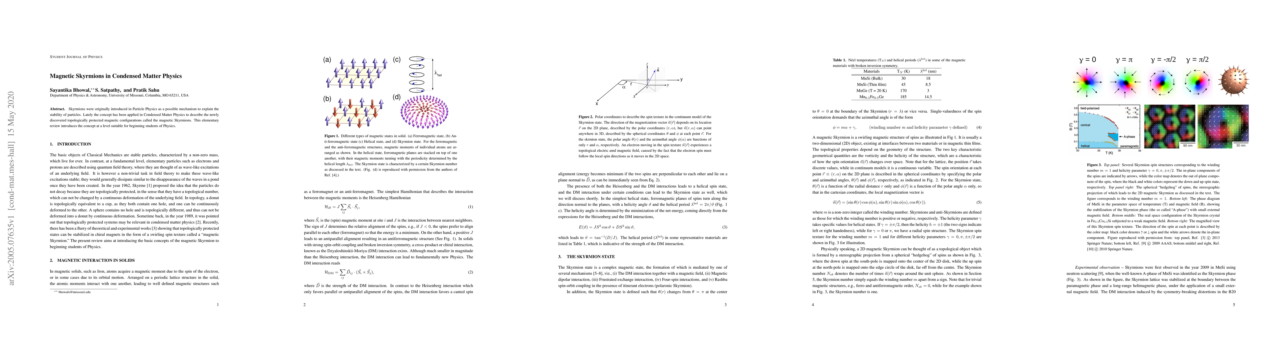 This paper provides an introductory overview of magnetic Skyrmions, originally from Particle Physics, now applied in Condensed Matter Physics to describe stable, topologically protected magnetic structures. Aimed at beginning Physics students, it explains the fundamental concepts in an accessible manner.