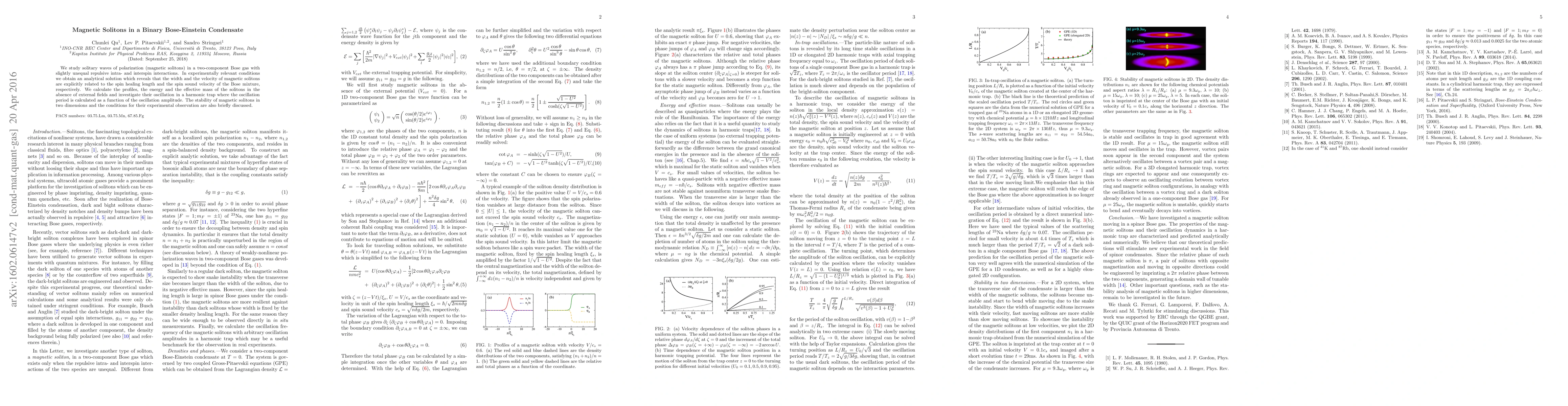 We study solitary waves of polarization (magnetic solitons) in a two-component Bose gas with slightly unequal repulsive intra- and interspin interactions. In experimentally relevant conditions we obtain an analytical solution which reveals that the width and the velocity of magnetic solitons are explicitly related to the spin healing length and the spin sound velocity of the Bose mixture, respectively. We calculate the profiles, the energy and the effective mass of the solitons in the absence of external fields and investigate their oscillation in a harmonic trap where the oscillation period is calculated as a function of the oscillation amplitude. The stability of magnetic solitons in two dimensions and the conditions for their experimental observation are also briefly discussed.