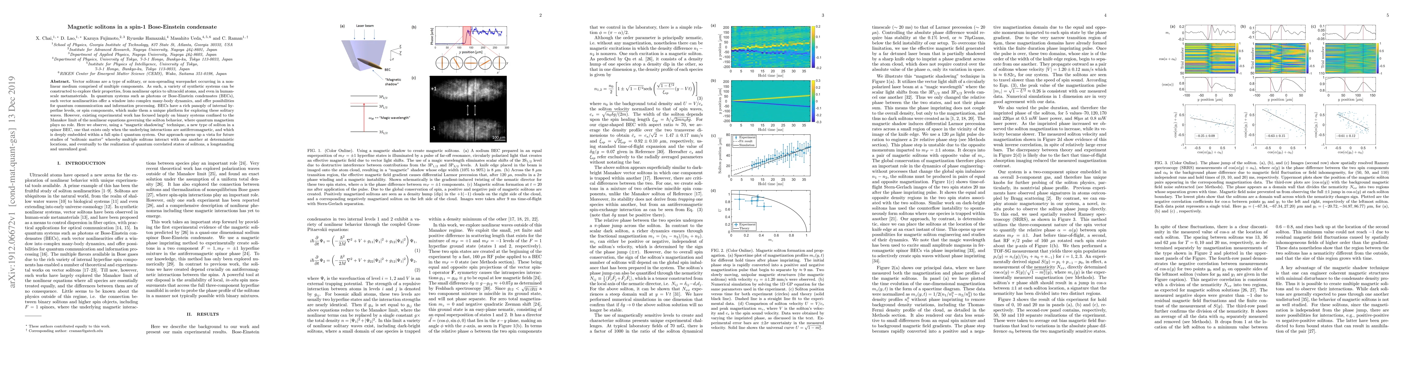 Vector solitons are a type of solitary, or non-spreading wavepacket occurring in a nonlinear medium comprised of multiple components. As such, a variety of synthetic systems can be constructed to explore their properties, from nonlinear optics to ultracold atoms, and even in human-scale metamaterials. In quantum systems such as photons or Bose-Einstein condensates (BECs), such vector nonlinearities offer a window into complex many-body dynamics, and offer possibilities for quantum communication and information processing. BECs have a rich panoply of internal hyperfine levels, or spin components, which make them a unique platform for exploring these solitary waves. However, existing experimental work has focused largely on binary systems confined to the Manakov limit of the nonlinear equations governing the soliton behavior, where quantum magnetism plays no role. Here we observe, using a ``magnetic shadowing'' technique, a new type of soliton in a spinor BEC, one that exists only when the underlying interactions are antiferromagnetic, and which is deeply embedded within a full spin-1 quantum system. Our approach opens up a vista for future studies of ``solitonic matter'' whereby multiple solitons interact with one another at deterministic locations, and eventually to the realization of quantum correlated states of solitons, a longstanding and unrealized goal.