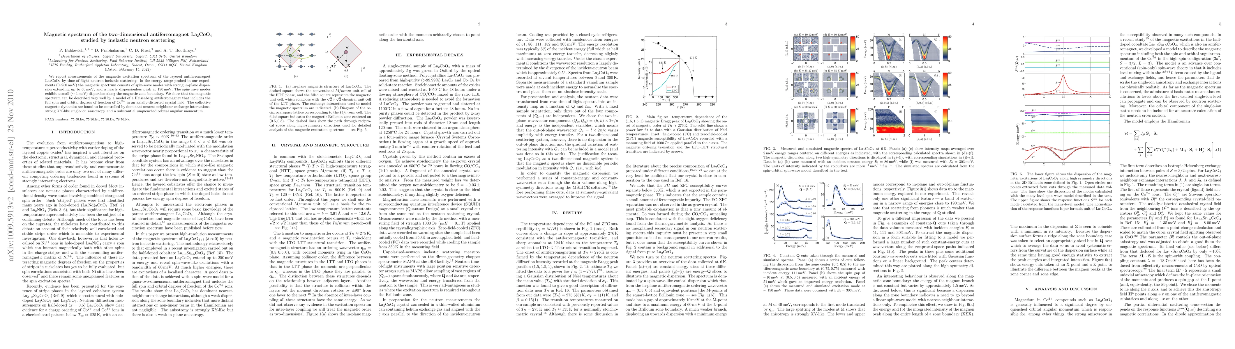 This study uses inelastic neutron scattering to investigate the magnetic spectrum of La2CoO4, revealing spin-wave modes with significant in-plane dispersion and a nearly dispersionless peak at 190 meV. The findings are well explained by a Heisenberg antiferromagnet model incorporating Co2+ spin and orbital dynamics in an axially-distorted crystal field.