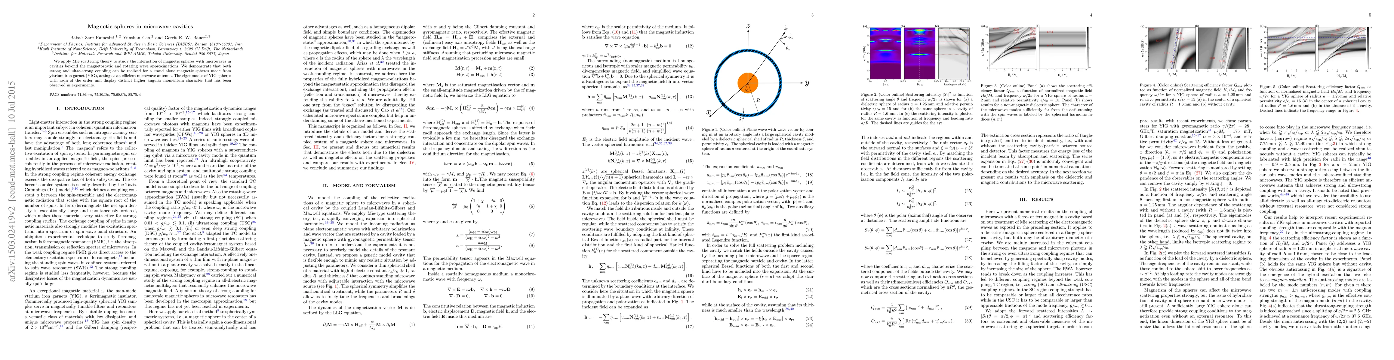 Researchers used Mie scattering theory to study magnetic spheres in microwave cavities, demonstrating that they can achieve strong and ultra-strong coupling for efficient microwave antennas, with eigenmodes showing higher angular momentum characteristics.