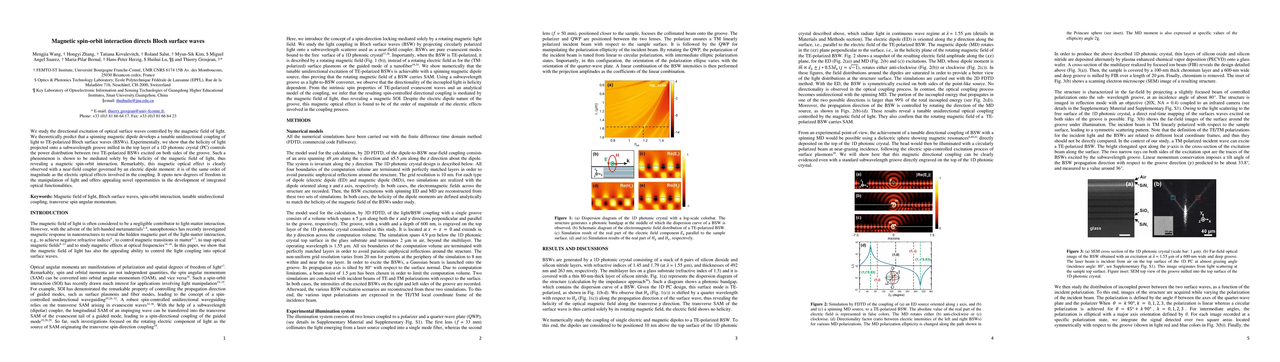 This paper investigates how magnetic spin-orbit interaction can control the directional excitation of optical surface waves via the magnetic field of light, demonstrating the unidirectional coupling of TE-polarized Bloch surface waves (BSWs) to a spinning magnetic dipole. Experimental results show that the helicity of light affects the power distribution between BSWs in a photonic crystal, revealing a significant magnetic optical effect comparable to electric optical effects.