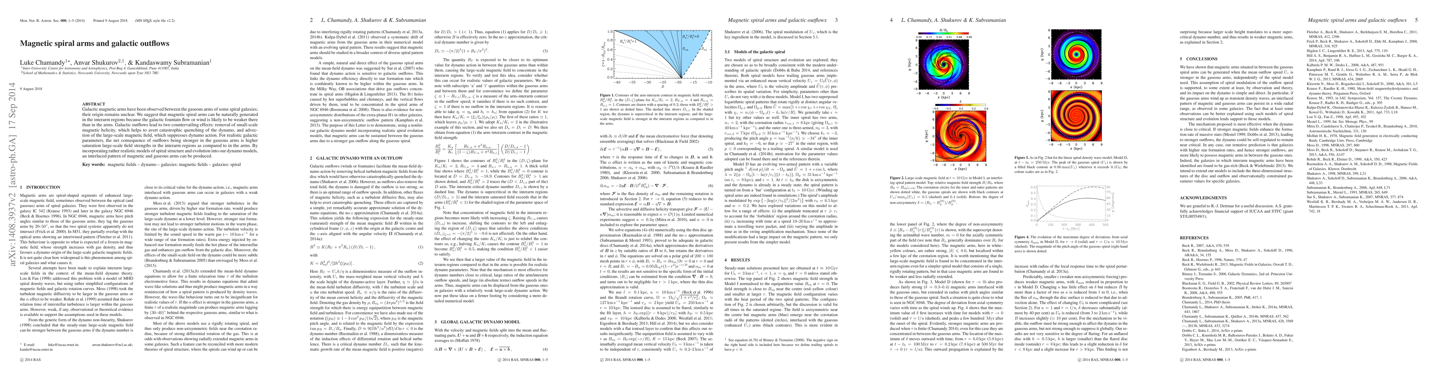 This paper explores the formation of magnetic spiral arms in galaxies, suggesting they arise due to weaker galactic fountain flows in interarm regions. It concludes that galactic outflows enhance large-scale magnetic field strengths in these regions, leading to an interlaced pattern of magnetic and gaseous arms.