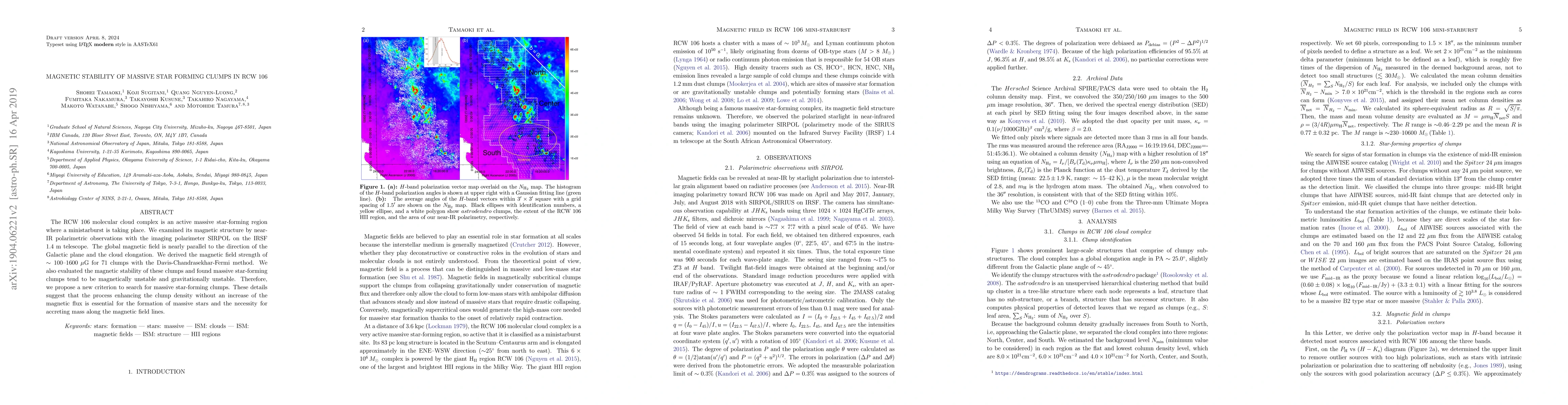 This study investigates the magnetic structure of RCW 106, a massive star-forming region, using near-IR polarimetry. The research finds that the magnetic field is aligned with the Galactic plane and the cloud's elongation, with field strengths ranging from 100 to 1600 µG. The study concludes that massive star-forming clumps are magnetically unstable, suggesting a new criterion for identifying such clumps.