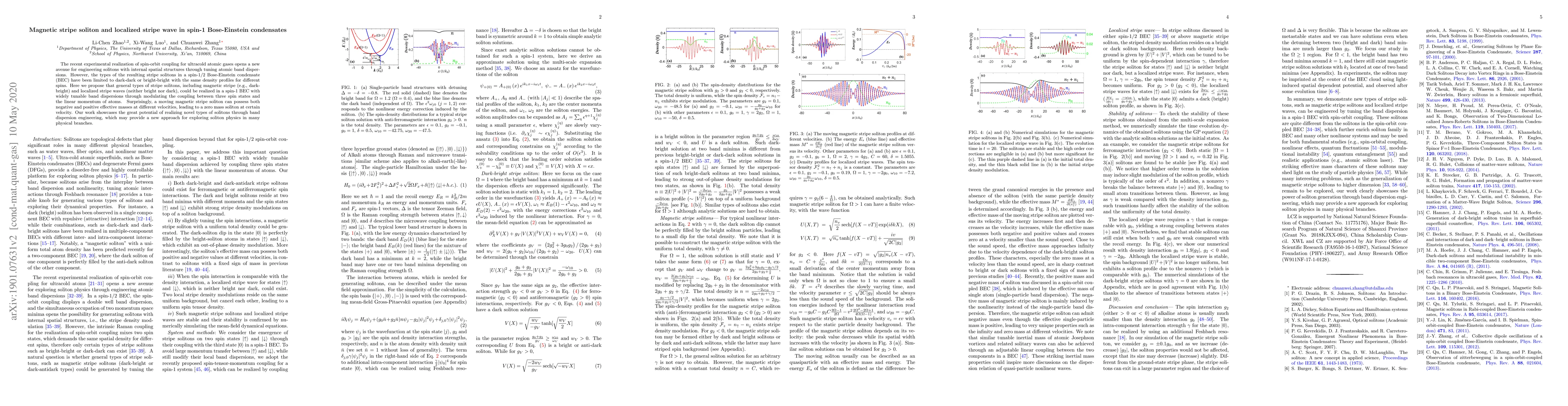 The recent experimental realization of spin-orbit coupling for ultracold atomic gases opens a new avenue for engineering solitons with internal spatial structures through tuning atomic band dispersions. However, the types of the resulting stripe solitons in a spin-1/2 Bose-Einstein condensate (BEC) have been limited to dark-dark or bright-bright with the same density profiles for different spins. Here we propose that general types of stripe solitons, including magnetic stripe (e.g., dark-bright) and localized stripe waves (neither bright nor dark), could be realized in a spin-1 BEC with widely tunable band dispersions through modulating the coupling between three spin states and the linear momentum of atoms. \ Surprisingly, a moving magnetic stripe soliton can possess both negative and positive effective masses at different velocities, leading to a zero mass soliton at certain velocity. Our work showcases the great potential of realizing novel types of solitons through band dispersion engineering, which may provide a new approach for exploring soliton physics in many physical branches.