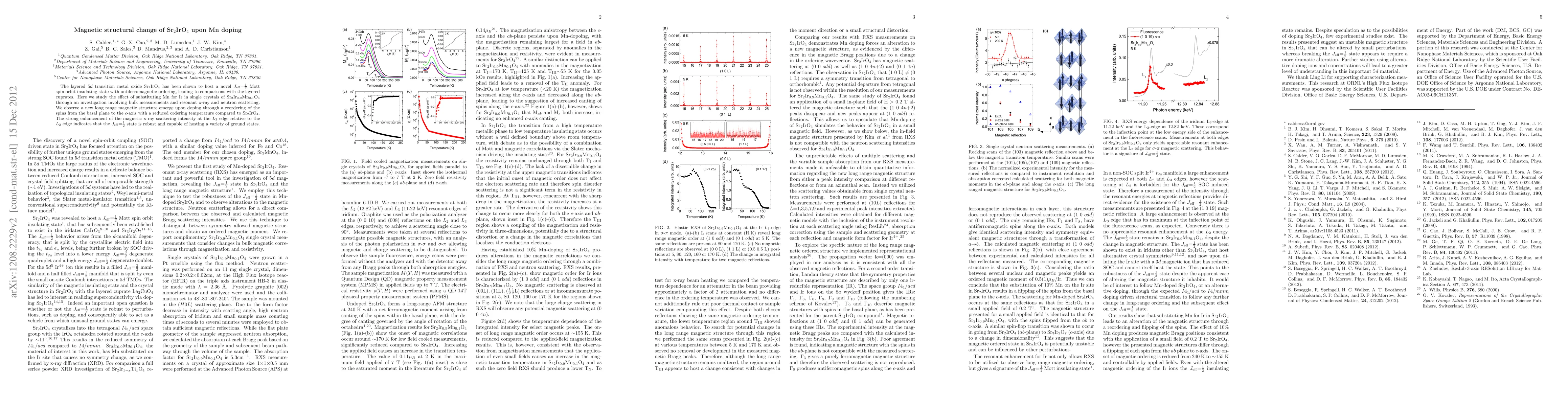 Researchers studied the effect of manganese doping on Sr2IrO4, a compound with a unique Mott spin-orbit insulating state, and found that it leads to a new long-range magnetic structure emerging with reduced ordering temperature.