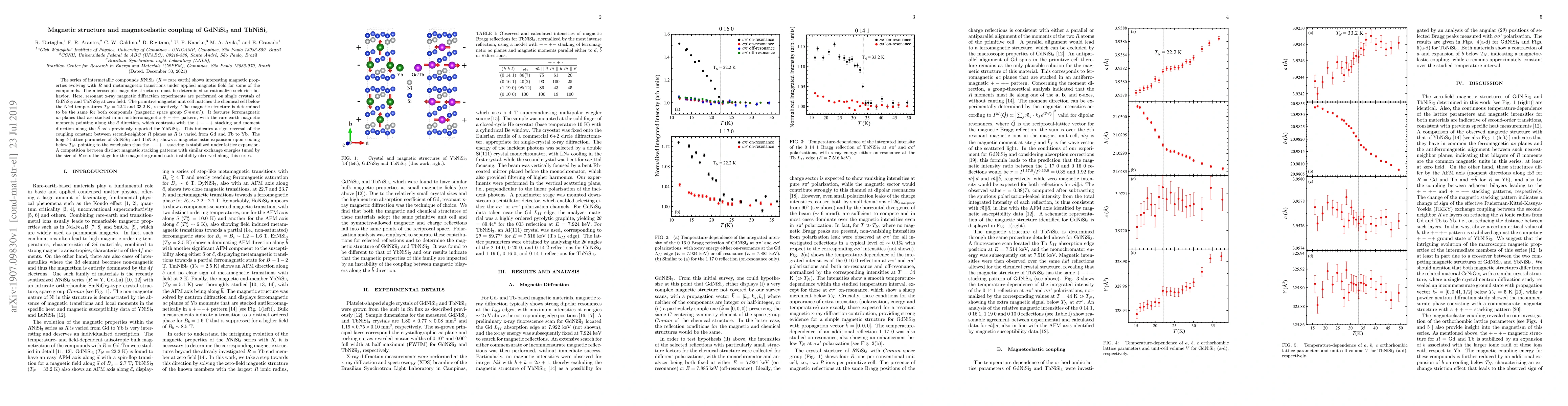 Researchers studied two rare earth compounds, GdNiSi3 and TbNiSi3, using x-ray magnetic diffraction to reveal a common ferromagnetic structure with antiferromagnetic stacking pattern. The findings suggest a sign reversal of coupling constants as the rare earth element changes from Gd to Yb.