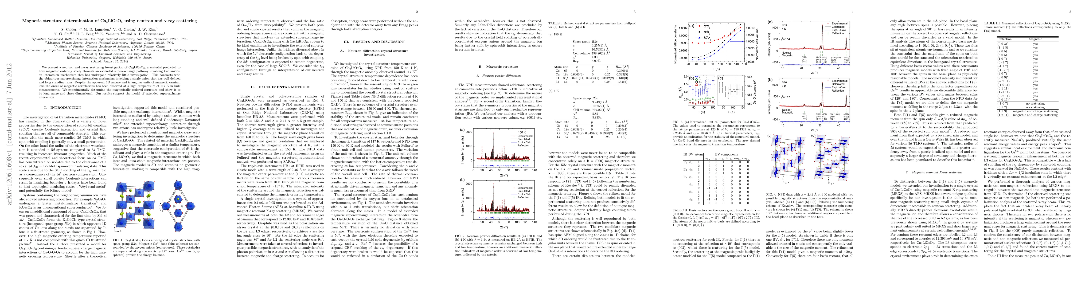 We present a neutron and x-ray scattering investigation of Ca$_3$LiOsO$_6$, a material predicted to host magnetic ordering solely through an extended superexchange pathway involving two anions, an interaction mechanism that has undergone relatively little investigation. This contrasts with the ubiquitous superexchange interaction mechanism involving a single anion that has well defined and long standing rules. Despite the apparent 1D nature and triangular units of magnetic osmium ions the onset of magnetic correlations has been observed at a high temperature of 117 K in bulk measurements. We experimentally determine the magnetically ordered structure and show it to be long range and three dimensional. Our results support the model of extended superexchange interaction.